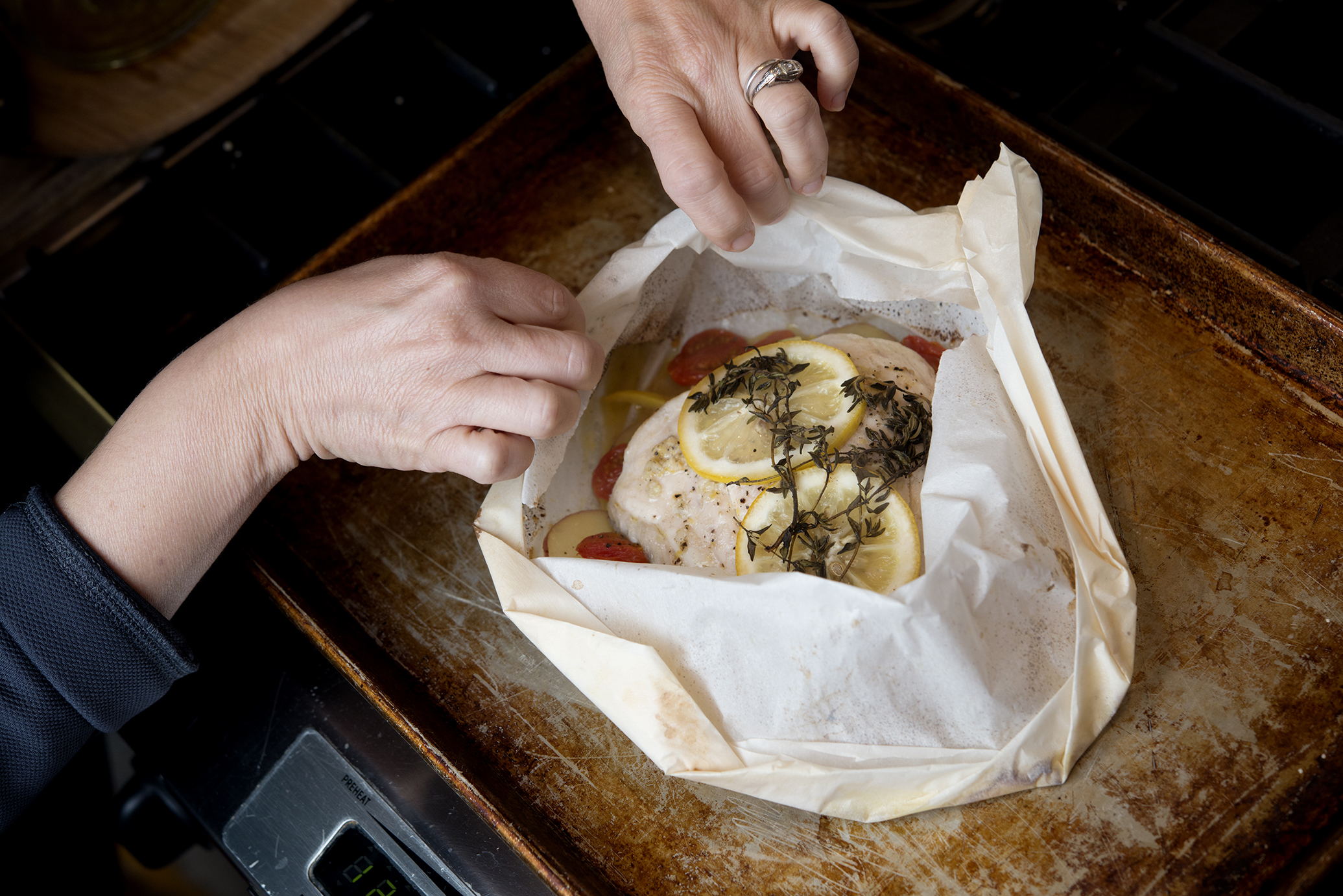 It’s not all just about the plating. Our photo shoots for “Dining In” also include some process shots of Tracey preparing the dishes, to give readers a visual of how the more complicated ones are made.