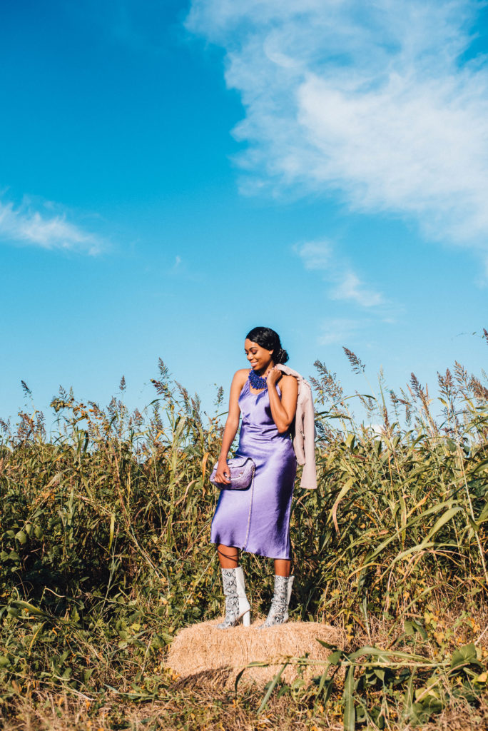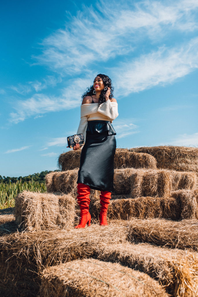 That’s OK, though. In fact, let’s embrace it. Not everyone in the country can get away with wearing off-the-shoulder sweaters or thin satin dresses right now. And as we crawl toward the cold season, our wardrobes will change at the same pace as the fall colors. The leaves will slowly fade from green to a crepey brown until one day, they finally fall. And just like that, we’ll be bundling up for another winter.