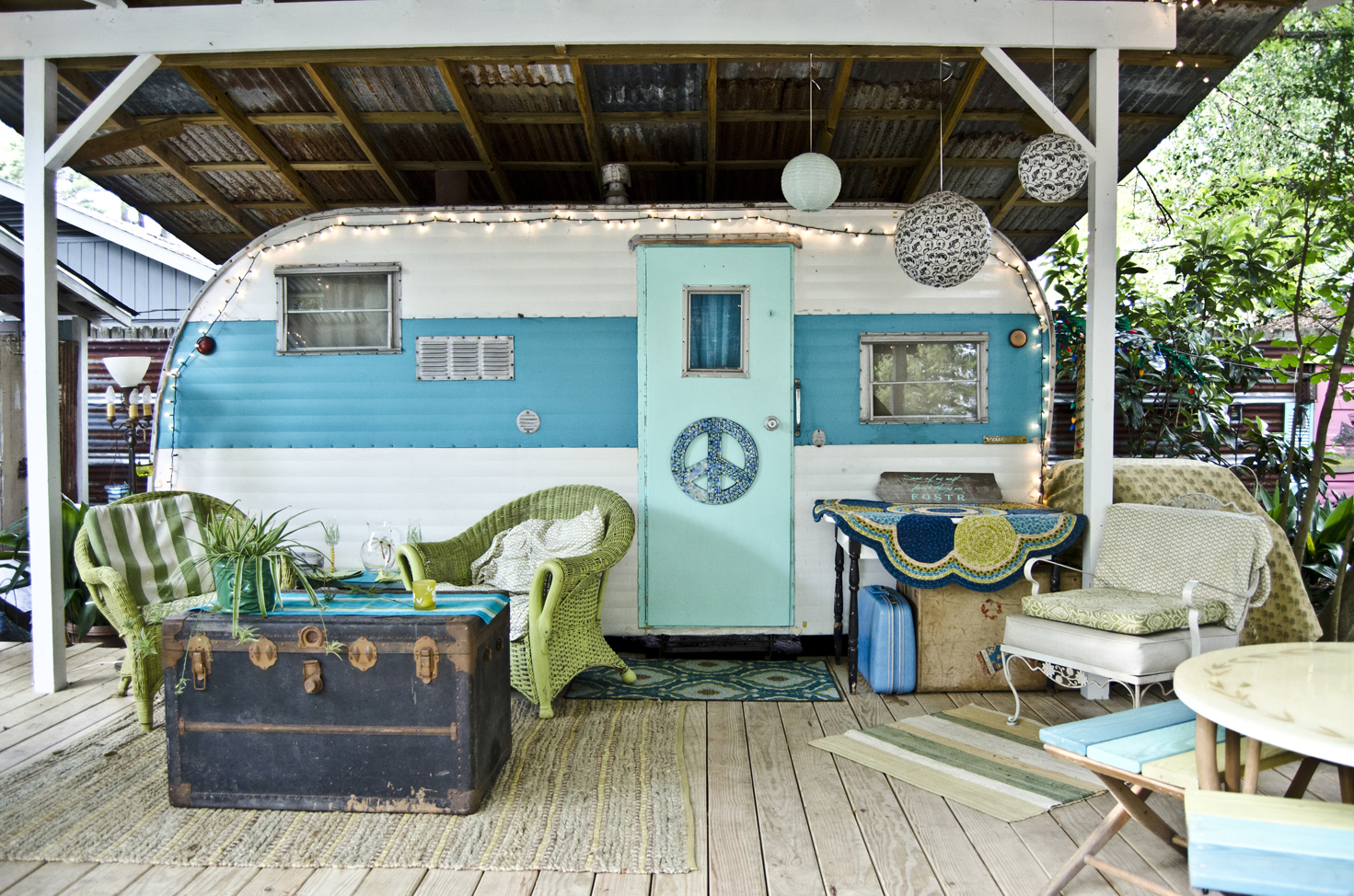 The digs: A 14-foot, 1964 Yellowstone trailer parked in Capital Heights. There are twin beds located on each end of the trailer, a full-size private bathroom with an antique claw-foot tub and an outdoor shower in a shuttered enclosure.