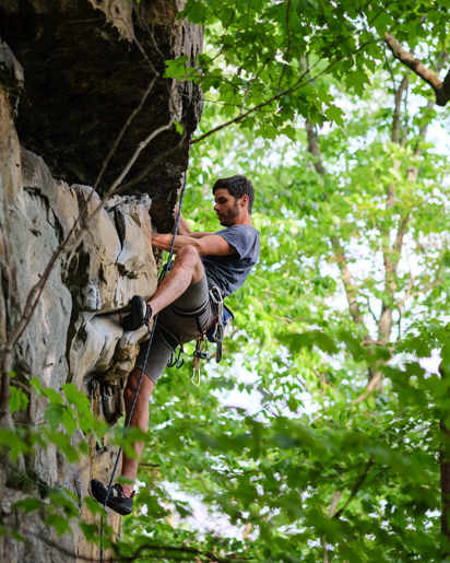 “There’s a lot more beginner access in places like Colorado or Chattanooga, (Tennessee),” says Lee Guilbeau, a local climbing instructor with more than a decade of experience. “There’s a bigger gap if you’re starting here indoors without really any relevance or context to outdoors. You have to research more as a beginner—really go for it and have more of a drive.”