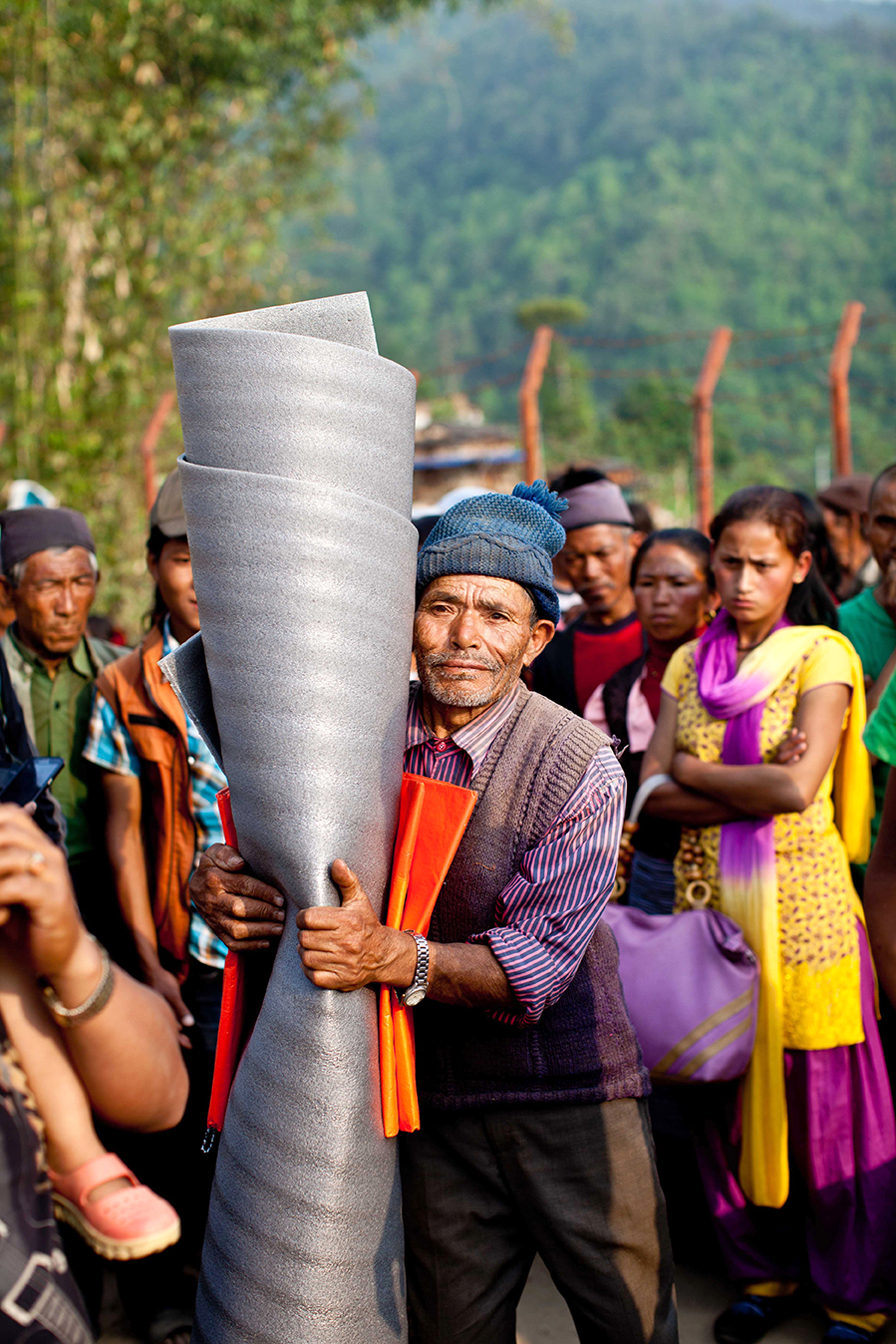 Our team had acquired 1,000 tents in India and traveled for more than 36 hours by bus to this remote area of Nepal. The tents were temporary shelters to help the rural communities survive the monsoons. Afterward, we planned to help them build more permanent structures.