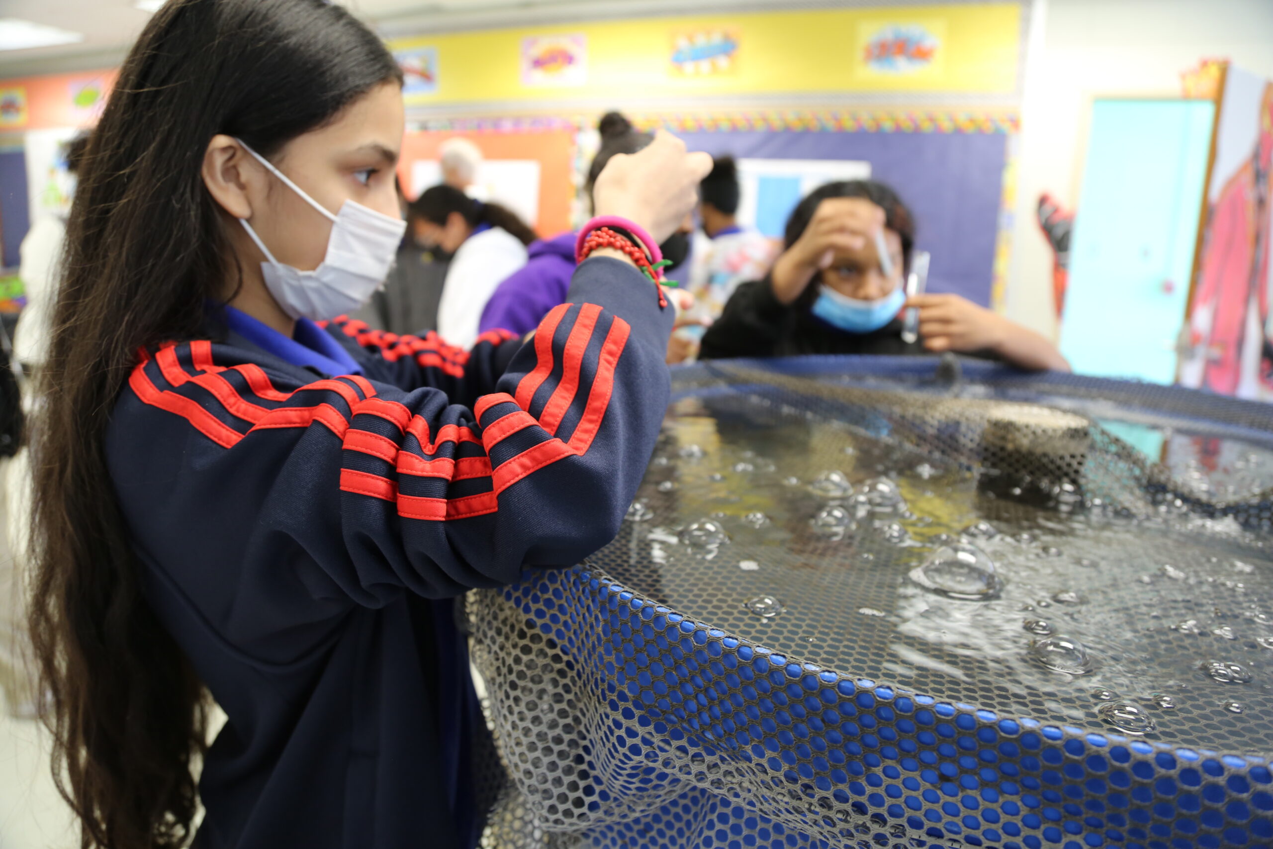 The students also meticulously clean the tank and observe strict rules, including wearing masks and using hand sanitizer, to maintain the biosecurity of their lab. They keep a close eye on the water’s pH level and work to rid the lab of any stressors that could affect the fish.