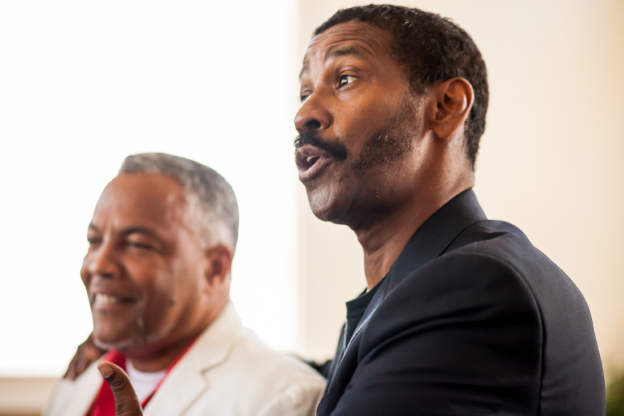While in town working on a remake of The Magnificent Seven, Washington spoke to the group about his experiences with the organization.