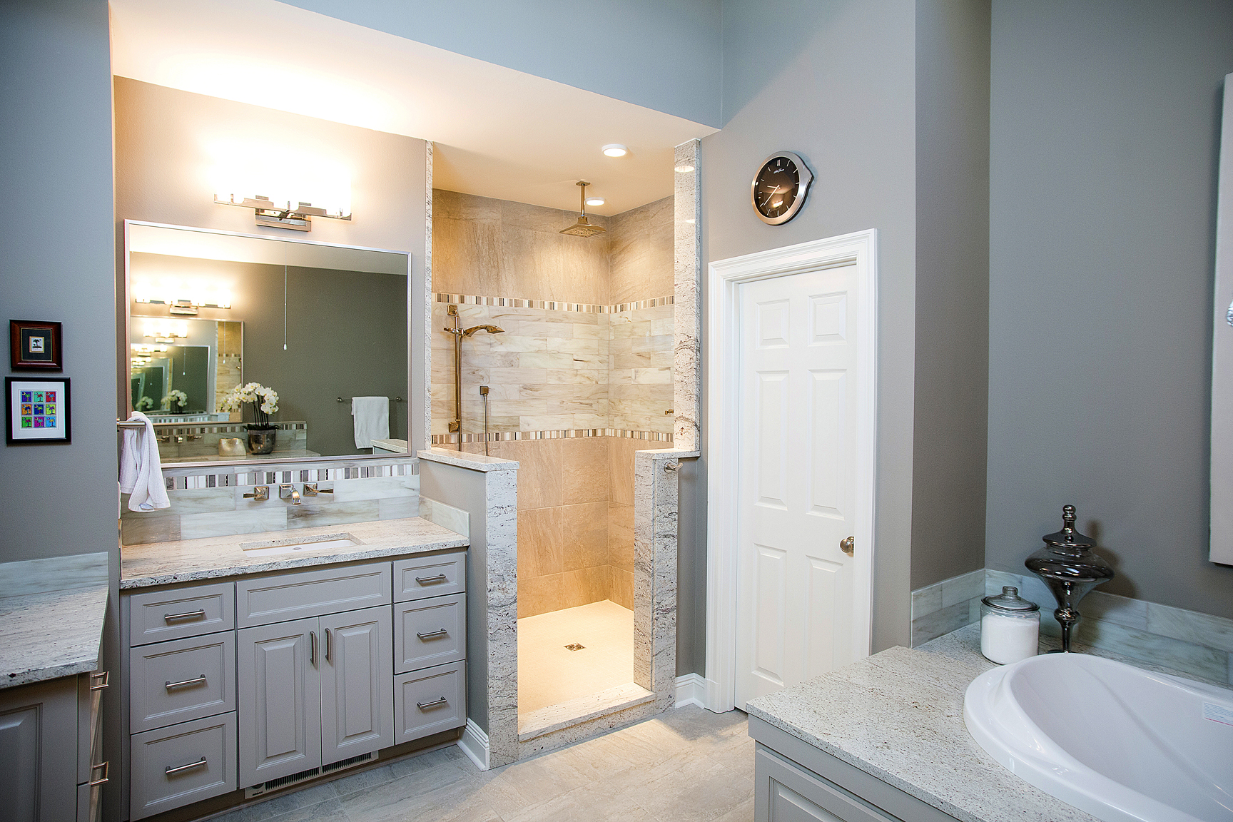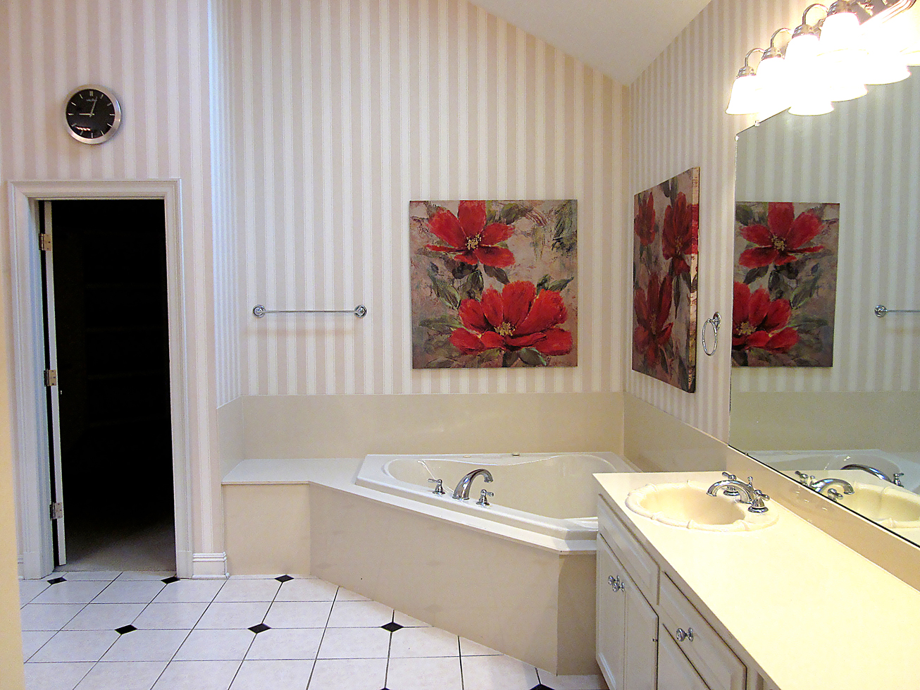 The 20-year-old home in Five Oaks was full of challenges when Harrison arrived. “There was so much going on, and the bathroom was very top-heavy,” she says.