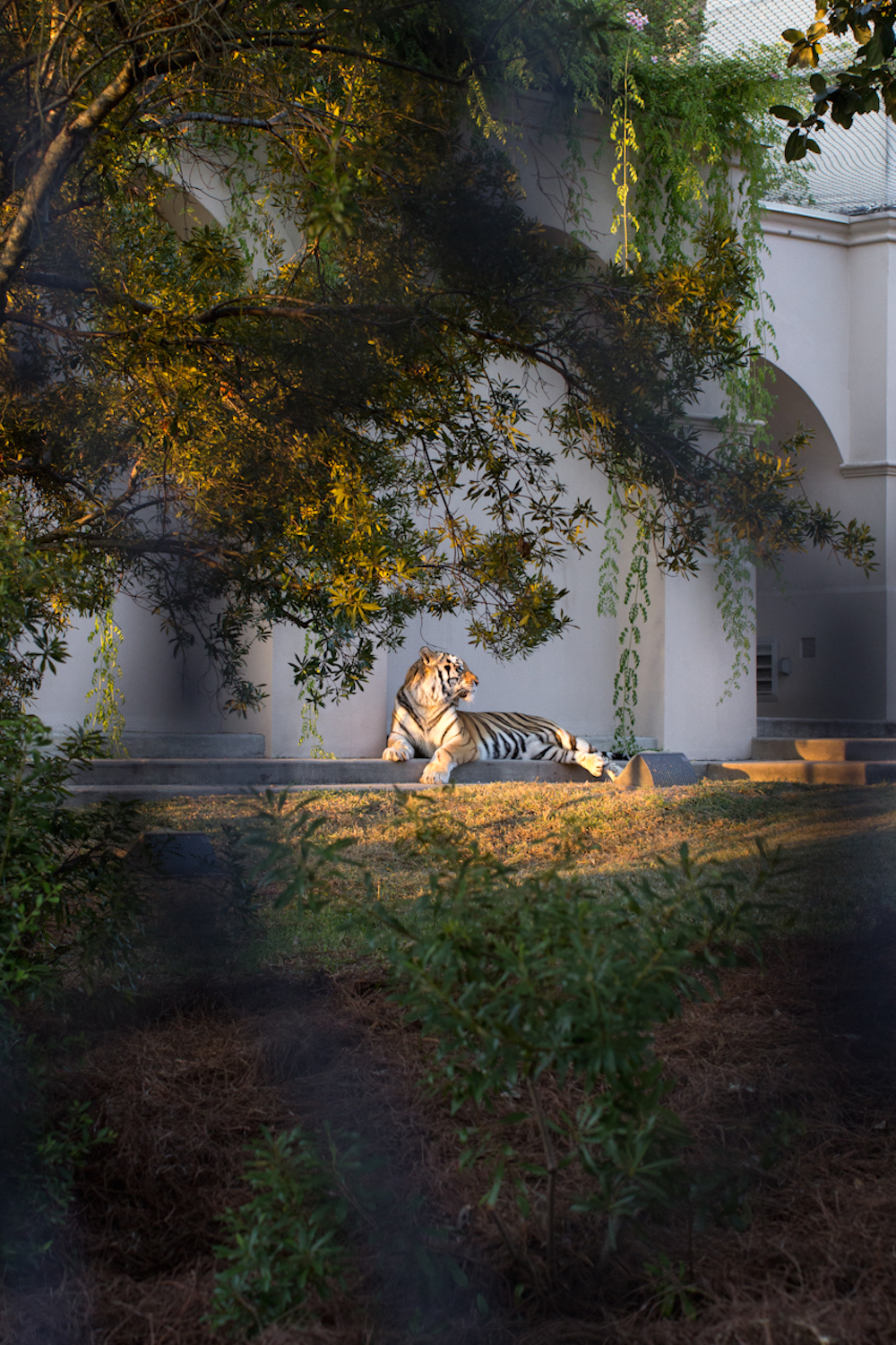 Outside the 15,000-square-foot habitat, I met with Clemones, Davis and the vet school’s director of public relations, Ginger Guttner. The trio took me on a walking tour through Mike VI’s living quarters.