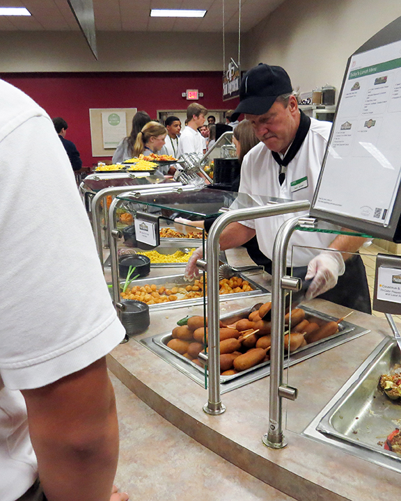 In the lunch line: “On game day, I enjoy eating lunch with the juniors, my teammates.”