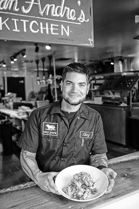Rather than being a butcher shop with a few small plates and sandwiches, at City Pork Brasserie and Bar, André showcases his talent and knack for combining Louisianan, German and Asian influences in dishes.
