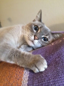 Heidi is a beautiful blue-eyed Siamese mix. This 4-year-old is little shy at first but warms up to new friends quickly. She likes to relax on the bed and be petted softly. She is fairly independent but gets along with other cats.