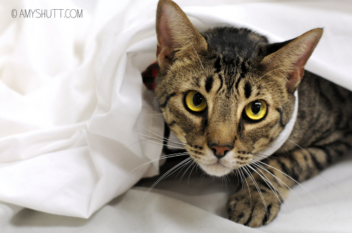 Henry hitched a ride next to a car engine. When the driver reached her destination, she heard meowing and called APAWS. At first, this brown tabby’s foster was concerned, he was feral. But as soon as she picked him up, Henry started purring and snuggling.