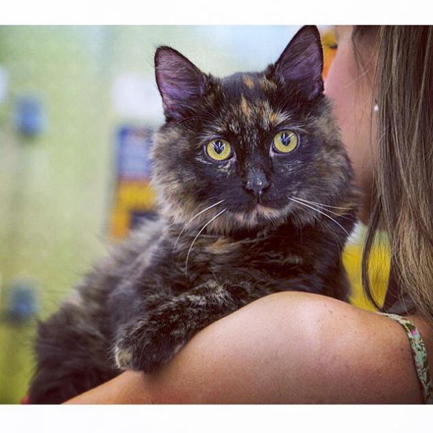 Kate (foster care) has a fluffy dark coat and glowing eyes that immediately draw your attention. This 8-month-old torti Maine coon mix was found at a car wash nestled by the vacuum cleaners. Although a little shy at first, this girl is eternally loyal to her family. With some time to adjust, Kate does well with other animals; but, she would also do well as an only pet.