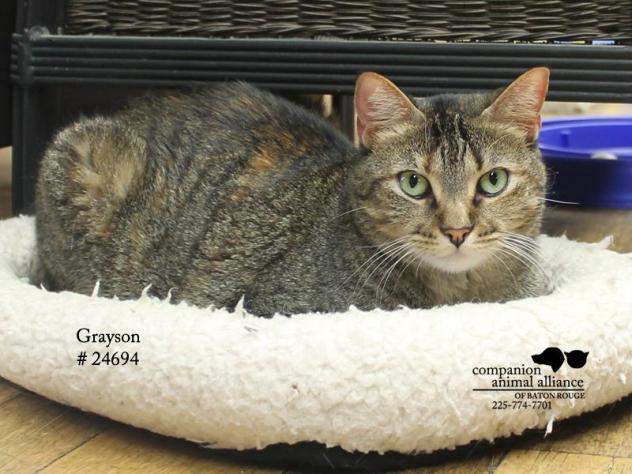 Grayson (#24694) is an adult female tabby with gorgeous green eyes.