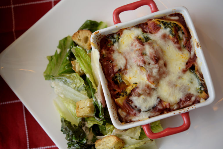 Try this at home: Spinach-stuffed shells baked in red sauce perfect for a romantic dinner