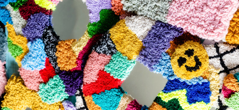 Local brand Stuff and Co. makes funky tufted mirrors and art pieces