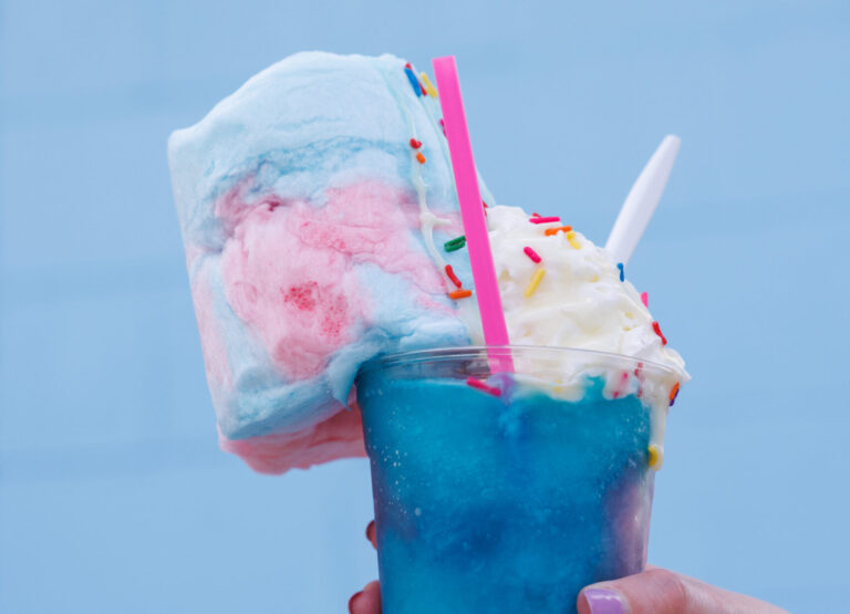 The new Meltdown Snoballs piles its desserts with cotton candy and cheesecake