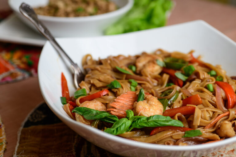 These Drunken Noodles with Shrimp are a lighter, spicy version of the take-out favorite