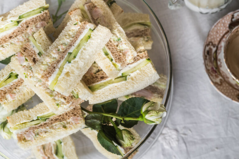 Add a light bite to teatime with these Layered Shrimp Salad and Cucumber Tea Sandwiches