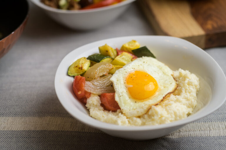 Make White Cheddar Cheese Grits for the base of a scrumptious breakfast bowl