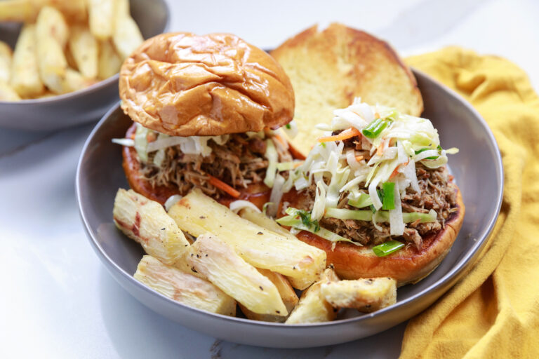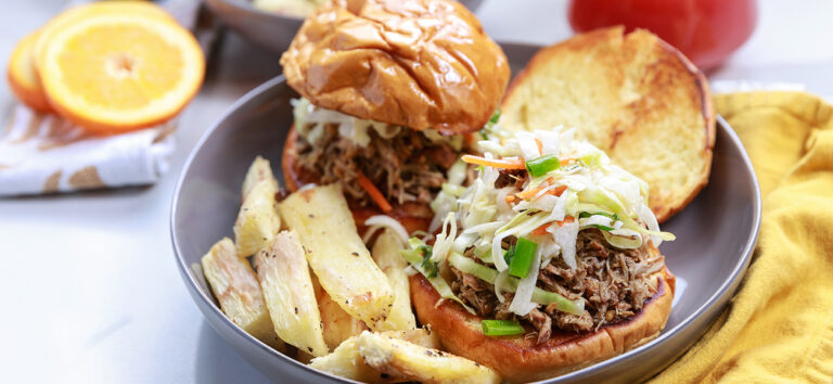 Jerk Pulled Pork and Jicama Slaw Sliders