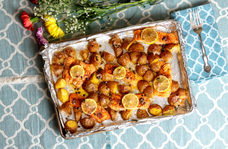 Make Mother’s Day or May entertaining easier with this simple sheet-pan salmon recipe