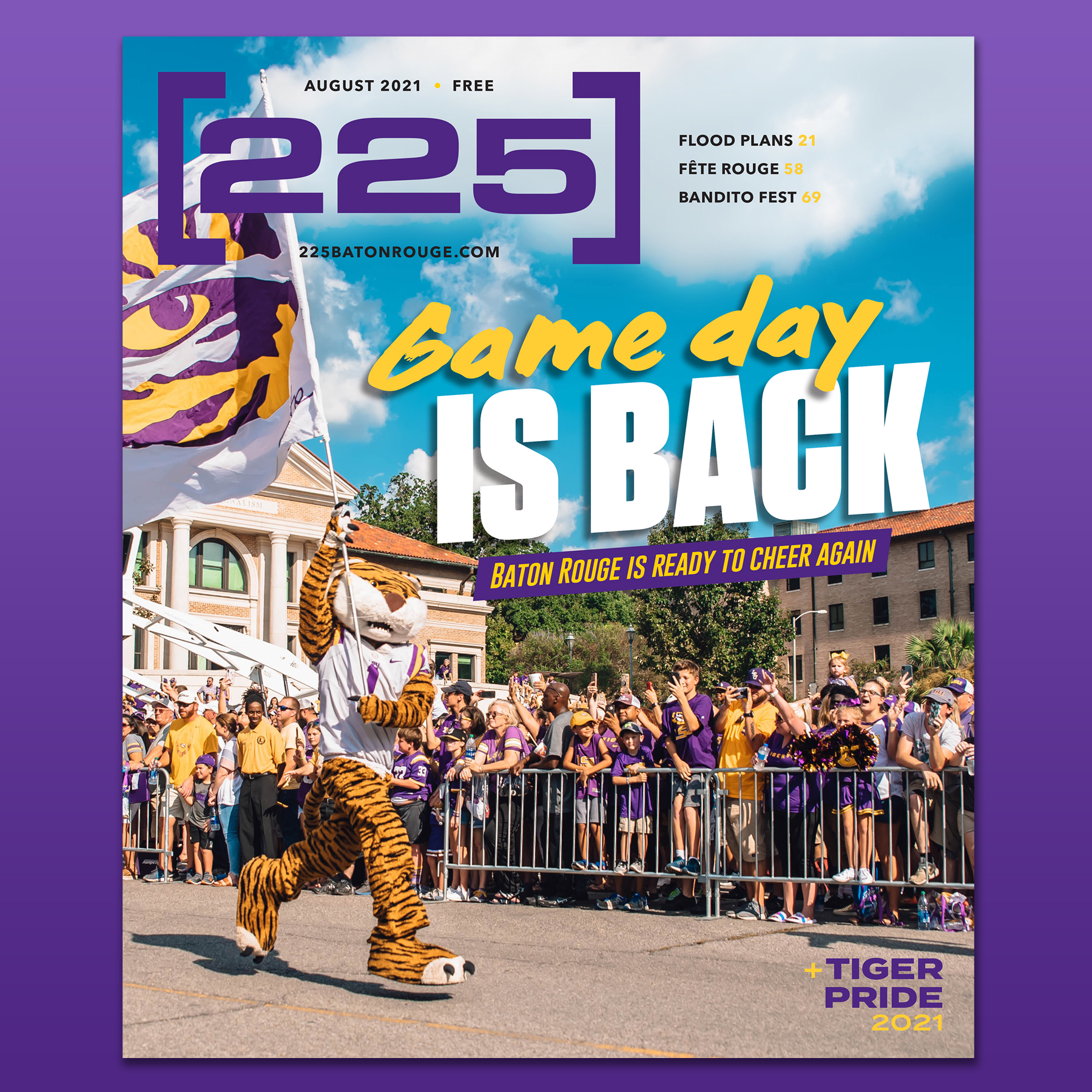 Inside this month’s print edition, you’ll also find our annual special issue, Tiger Pride. We’ve been publishing Tiger Pride for 10 years this fall, and it is 225’s annual celebration of the passion and pageantry of LSU football. This year, we have a 2021 season preview; exclusive interviews with the brand-new LSU Athletics head coaches for basketball and baseball; features on some all-star players to watch; and so much more.