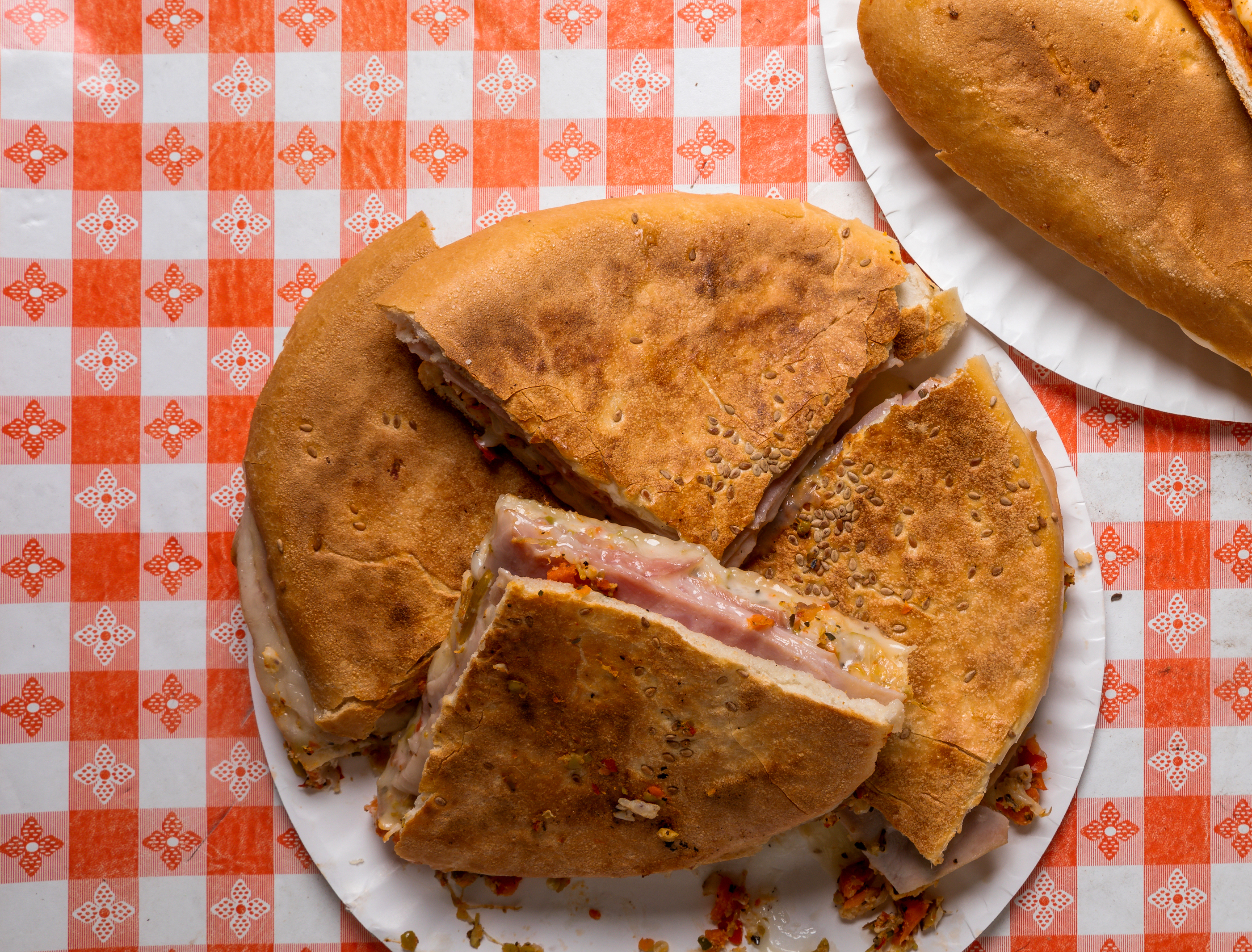 Some muffalettas you can hardly wedge into your mouth, but this one makes it easy. A panini press creates the perfect just-crisp exterior. Inside the sammy, warmed provolone, capicola, ham, salami, mortadella and house-made olive salad fuse harmoniously.