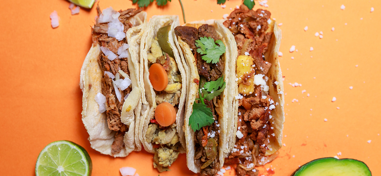 Order single tacos with soft corn or flour tortillas stuffed with barbacoa, fajita-style chicken or beef, el pastor (braised, spiced pork studded with pineapples), pork carnitas and sometimes tongue.