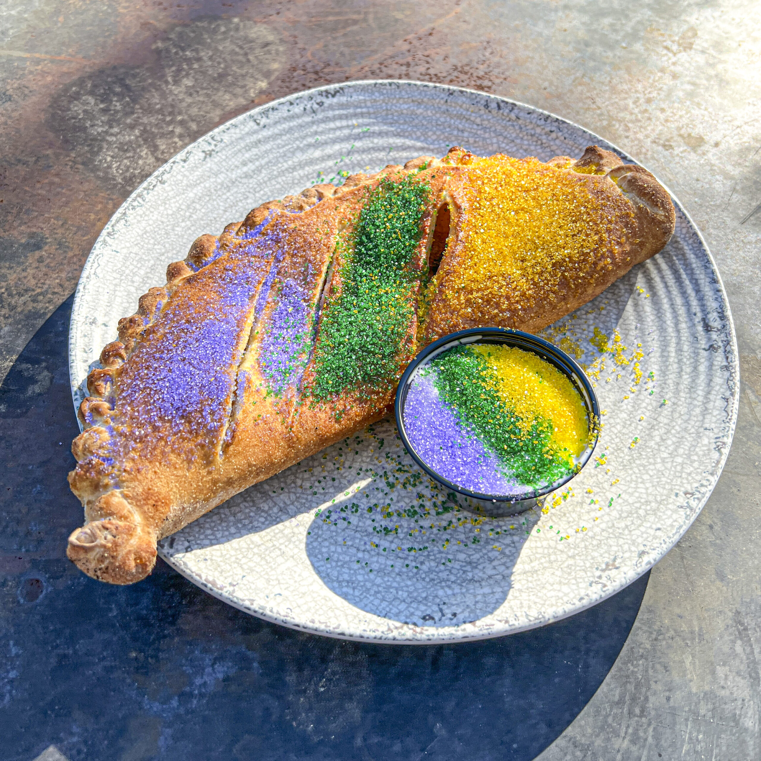 Dive into a savory pizza pie for dinner and then follow it up with a sweet king cake calzone for dessert at Rotolo’s. The hand-rolled, buttery treat comes in two flavors: Original King Cake or Apple Pie Cream Cheese. Icing also comes on the side for dipping. Order here