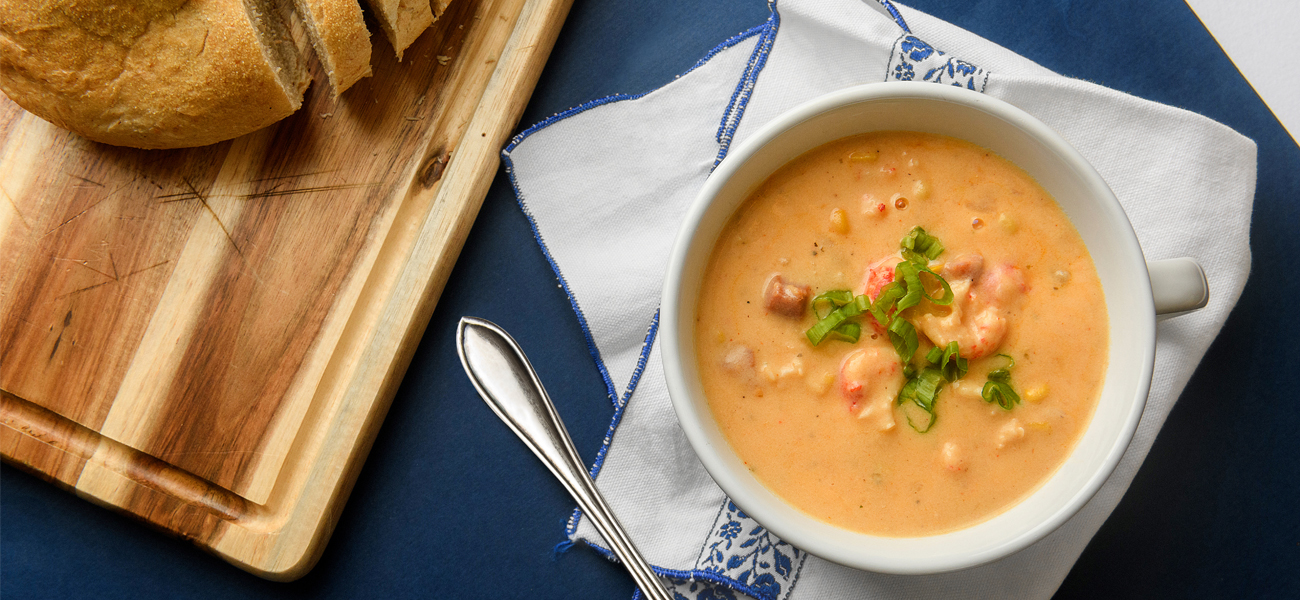 The recipe I came up with this month uses all of those leftovers in one dish. It is a rich, creamy chowder filled with crawfish tails, potatoes, corn and a hint of smoky andouille sausage. It will warm your heart and soul, and it’s a fantastic way to repurpose ingredients. You don’t have to have leftovers from a crawfish boil to make this tasty chowder—there are plenty of frozen crawfish tails available in our grocery stores throughout the year. Remember to support our local farmers and only buy Louisiana crawfish!
