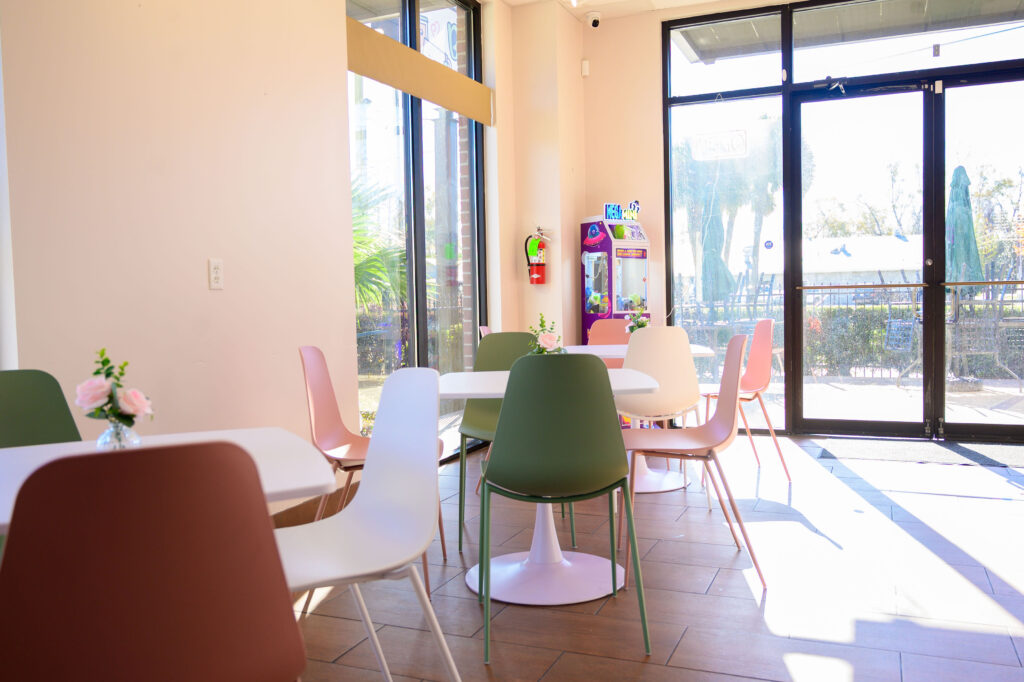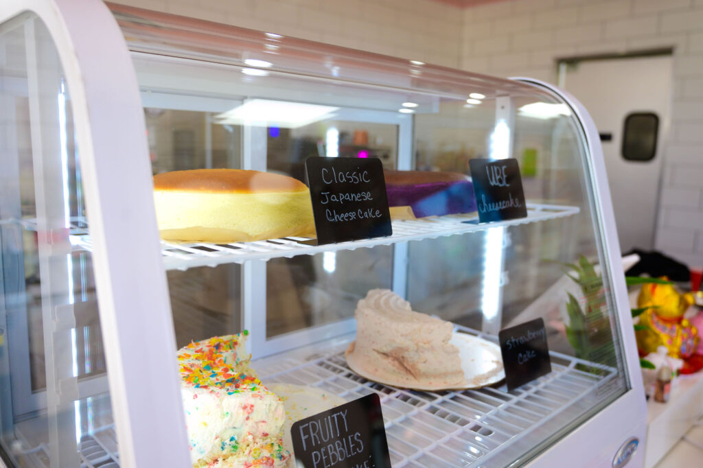Even the food in the café is made in-house by her mother. For Mardi Gras season, she stocks king cakes from Hi-Do Bakery in Terrytown. She also carries an assortment of locally made Japanese cheesecakes from EM’s Bakery. The artfully decorated cakes are airy and not quite as sweet as American cheesecake, available in flavors like classic cheesecake, ube, strawberry, Fruity Pebbles and coffee.