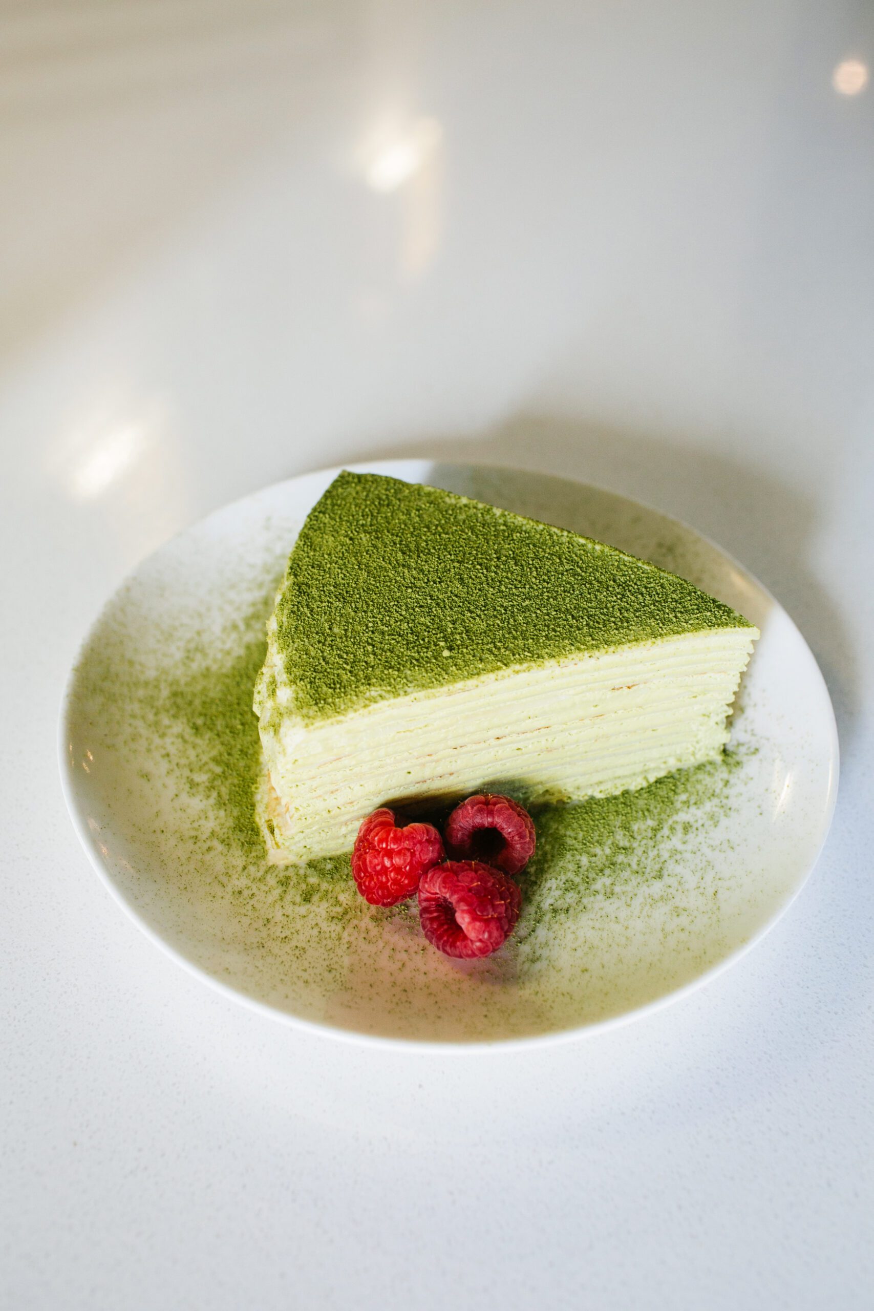 At Umami Japanese Bistro, the matcha crêpe cake delivers a palate-cleansing finish through impossibly thin layers of pastry and creamy filling. Owner Jimmy Nguyen sources the popular item through local micro-bakery Sweet Peony. It features alternating layers of homemade crêpes gently stacked with green tea pastry cream, topped with a dusting of matcha. Some form of the cake has been on the menu since Umami opened under previous ownership in 2016. The early version was inspired by Lady M Cake Boutique, a luxury bakery in New York famous for its fusion of French and Japanese techniques and mille crêpe cakes.