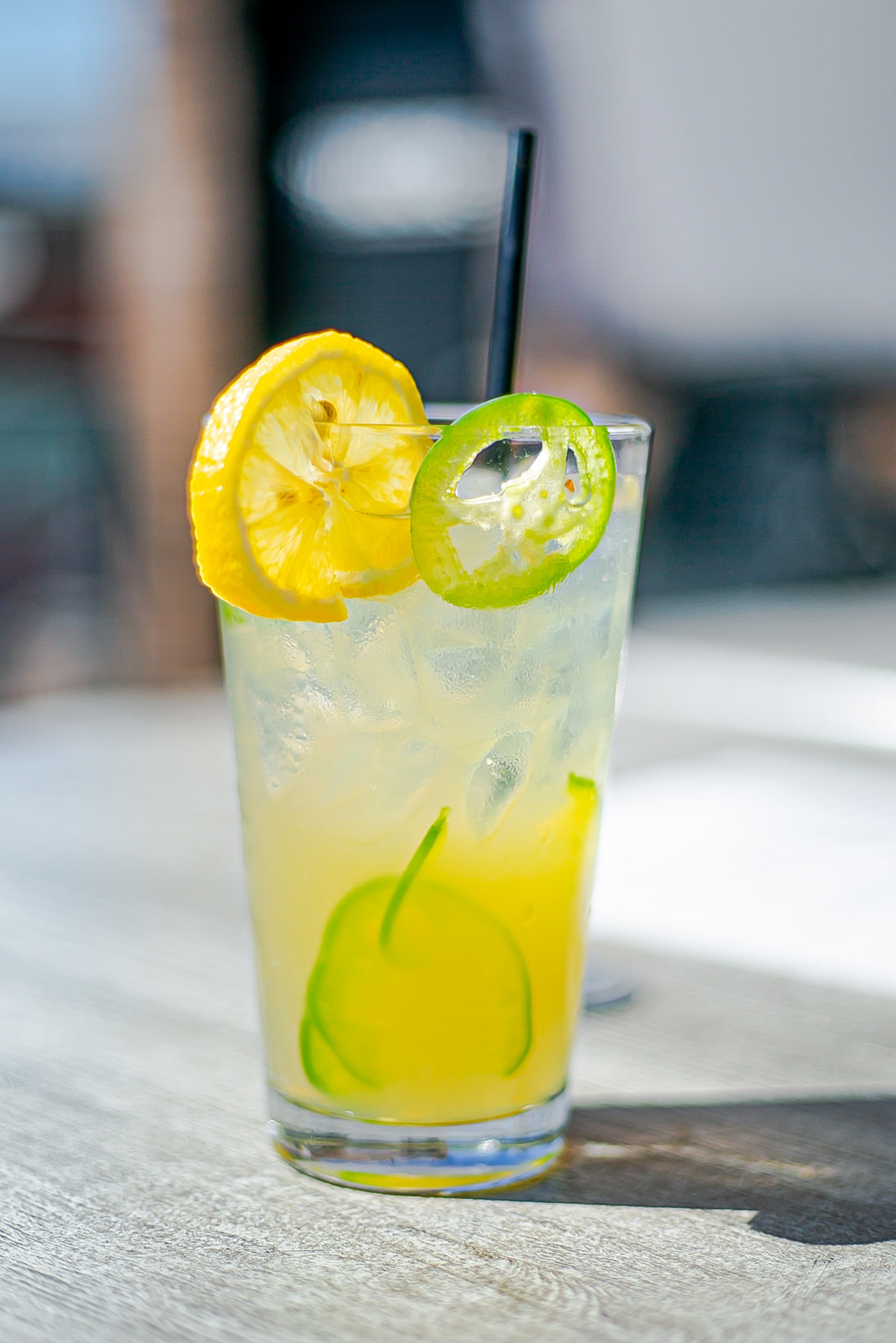 Tropic Like it’s Hot is a light and refreshing cocktail that still packs a punch. Jalapeno and pineapple flavors are mixed with whiskey, lemon and finished with Sprite. The sweet and relaxing Sparkling Lavender Lemonade blends lavender simple syrup and chamomile with lemonade. The drink is floral and citrus-y and almost reminiscent of tea, thanks to the chamomile. Get it to go for a chill pool day.