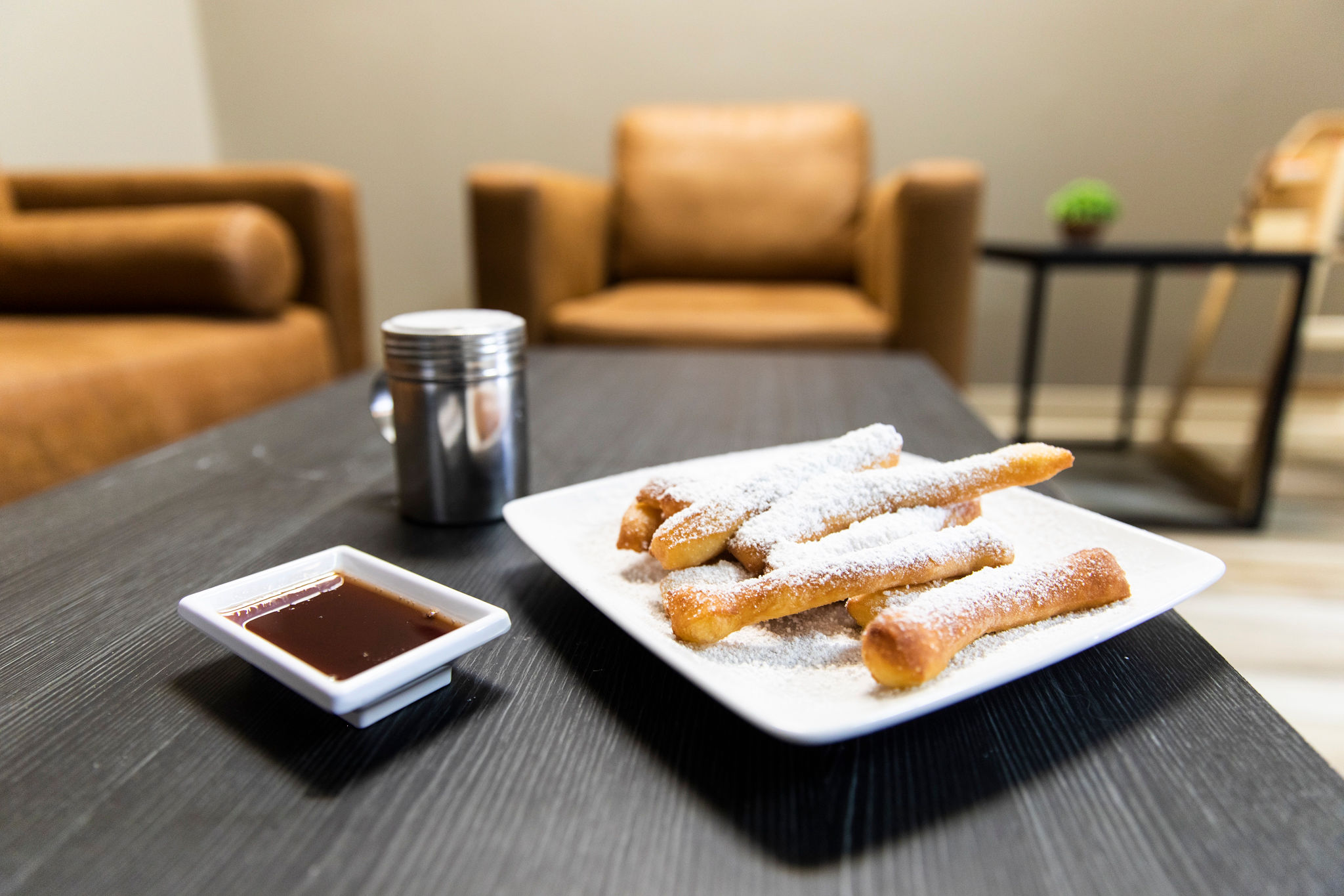The location, a former Papa Murphy’s Take and Bake Pizza, has been retooled and refreshed with clean lines and comfy places to sit and munch on freshly made beignets. There’s also a drive-thru window for to-go orders. Traditional beignet squares and beignet fingers are joined in a beignet flight, comprised of pastries served with a choice of sauces. Options include chocolate, caramel, raspberry, matcha, white chocolate, honey, blueberry and strawberry. The flight idea was inspired by Hobdy’s personal dislike of powdered sugar, he admits.