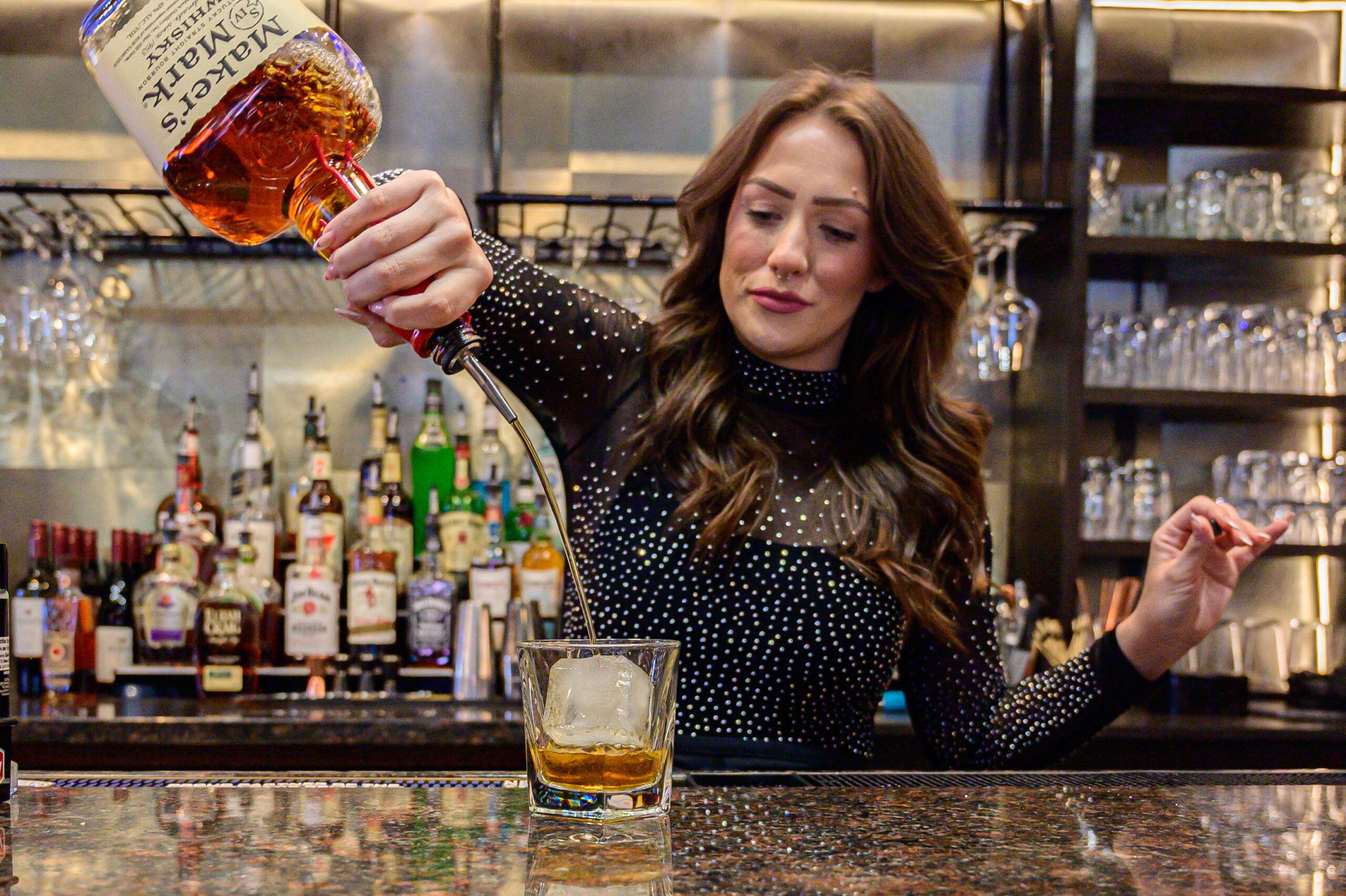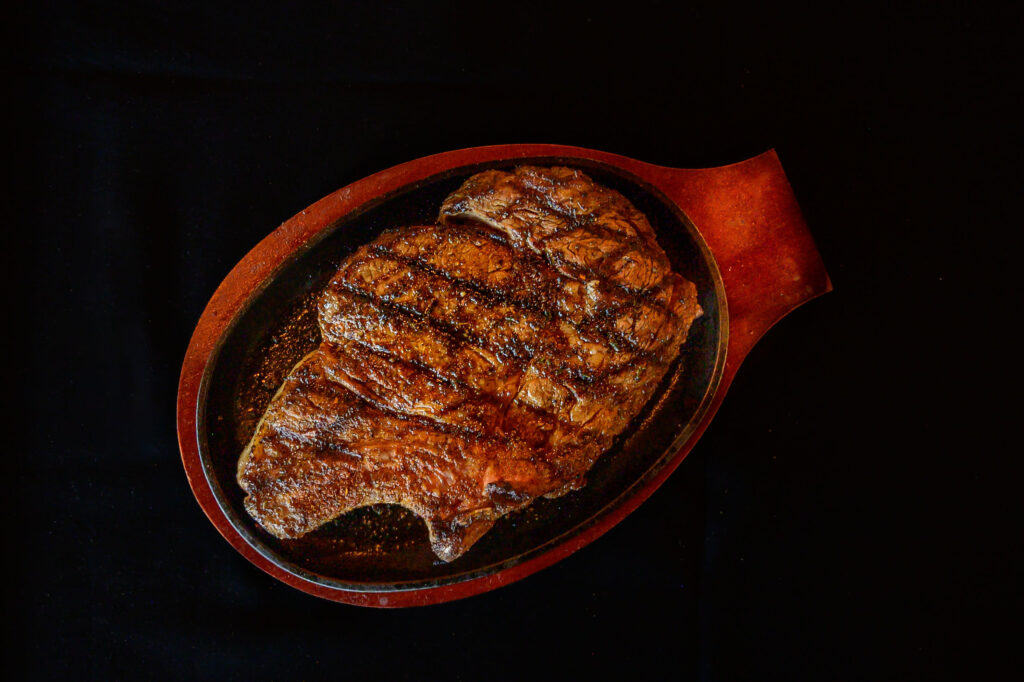 The steaks are trimmed in-house, including a 22-ounce Prime Angus cowboy rib-eye served sizzling on a cast iron skillet. There’s also an 8-ounce filet, 12-ounce boneless ribeye and 10-ounce baseball cut sirloin, so named for its rounded shape.