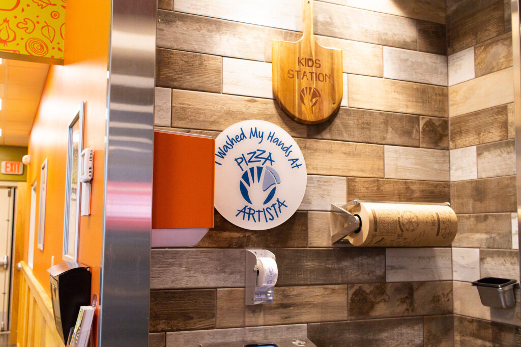 While you dine, download the Rockbot app and request your favorite music on the sound system. And kids will love the station where they can tear off their own interactive table paper and insert their hands into a timed, double-barreled hand washer for a jolt of pre-meal hygiene (a convenient amenity for adults, too).