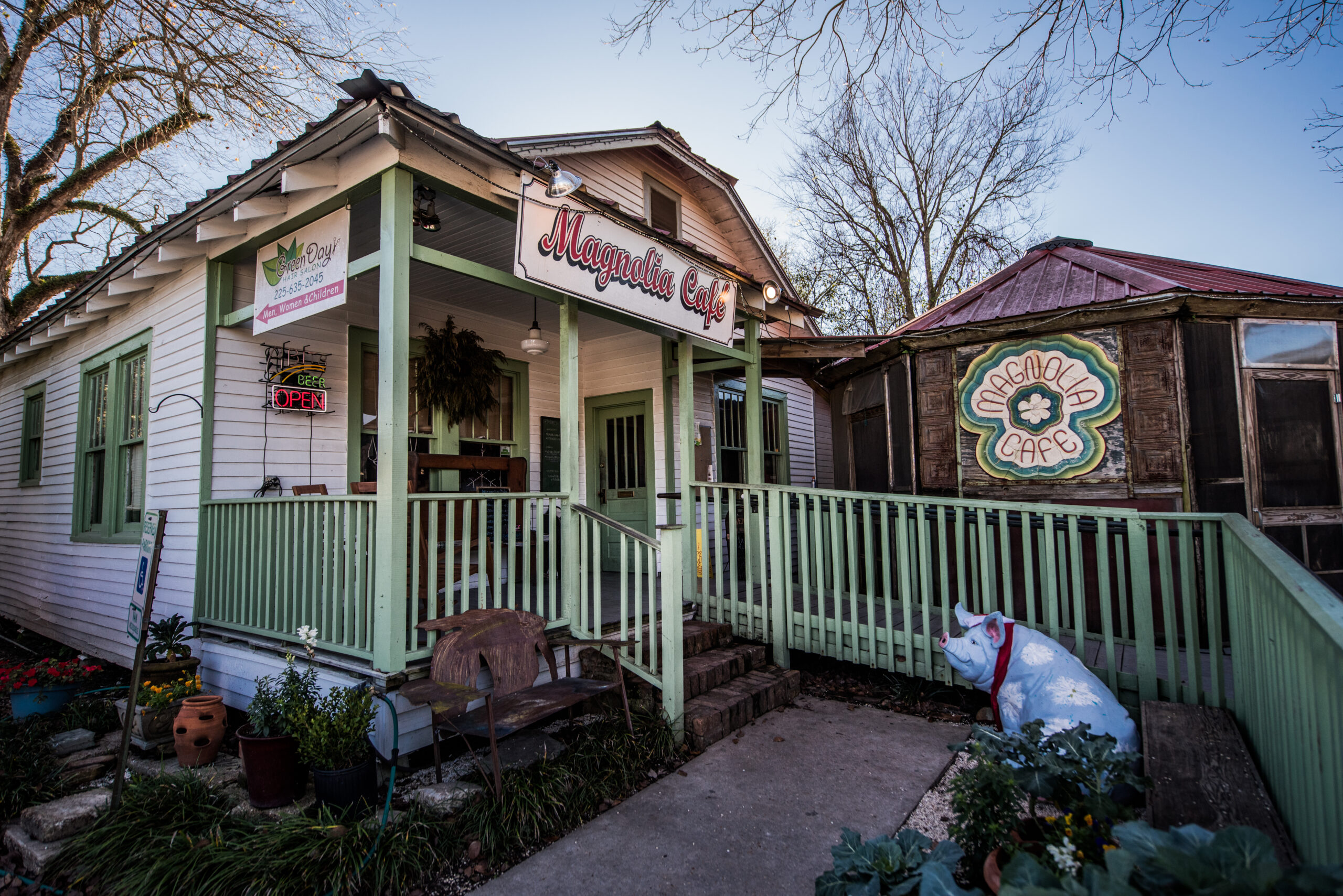 Smack-dab in the middle of St. Francisville’s main drag, the Magnolia Cafe has been the heart and soul of this small town for decades. Locals pull up a chair multiple times a week, while visitors beeline to “the Mag” after a day of shopping and touring. The cafe’s charming rustic interior, complete with creaky hardwood floors, local art and a large patio, feels disarming and homey—the perfect setting for some alligator bites, a French dip po-boy or a juicy Mag Burger.