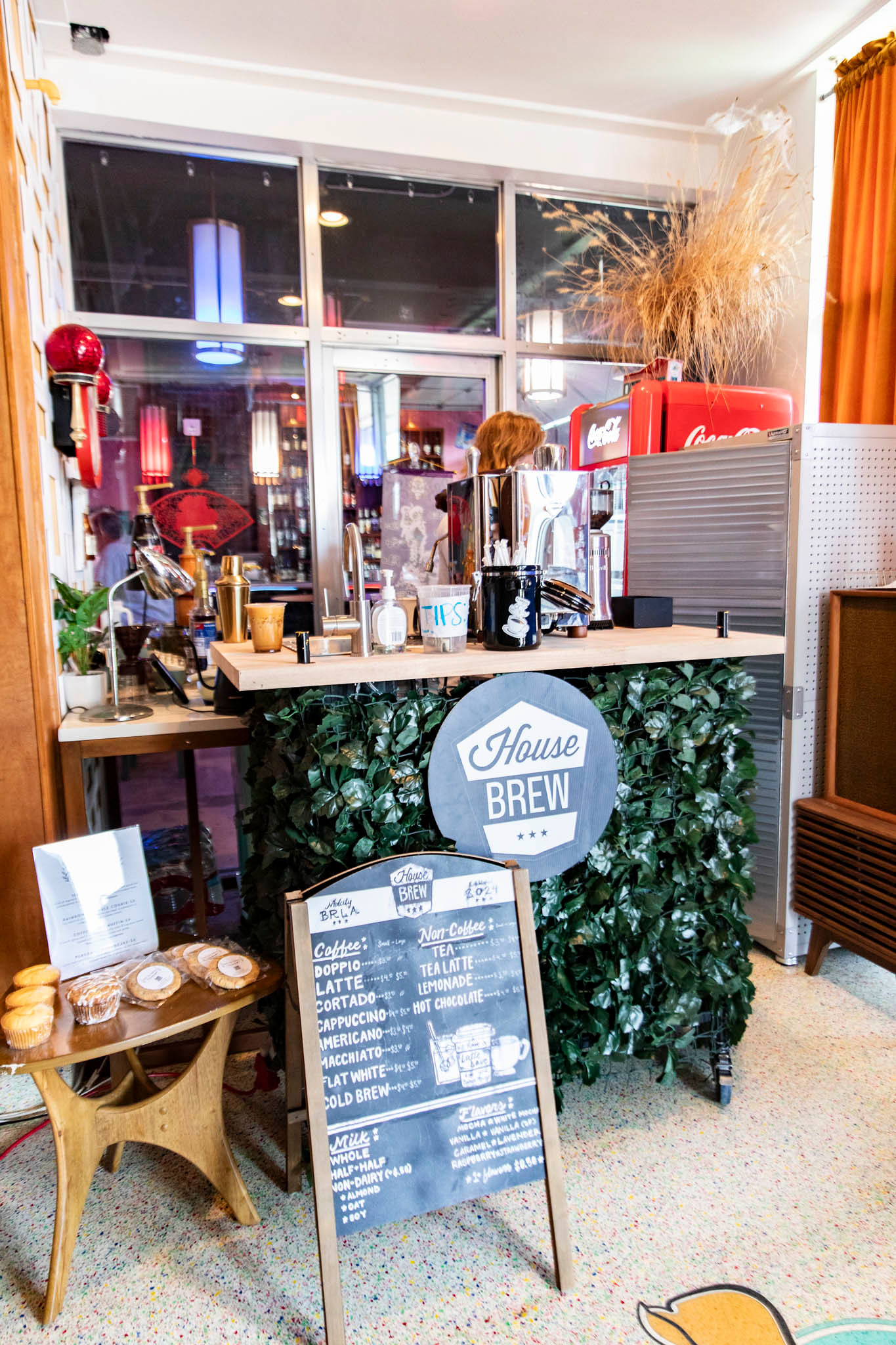 Though House Brew takes over Pelican To Mars’ lounge space in the mornings, Bergeron leaves little to no trace of the pop-up coffee shop in the afternoons. Once they’re done for the day, syrups and other supplies are stored in a cabinet and the cart is tucked away.