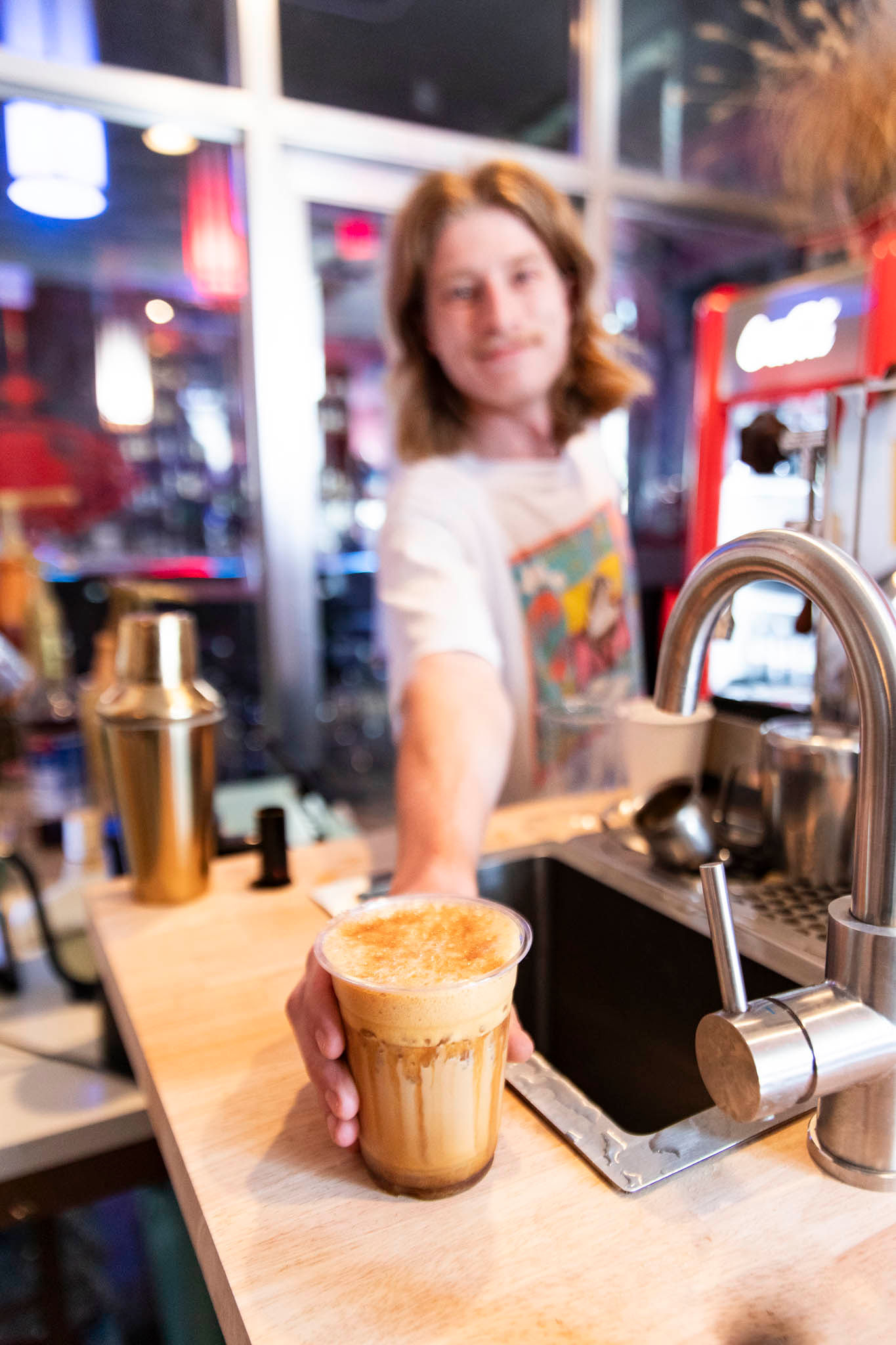 Owner Manning Bergeron slings drinks from the small counter every day. Their goal is to offer high-quality beverages and a space for people to hang out.