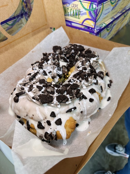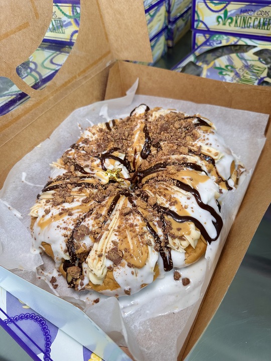 Expect traditional cinnamon stacked up and ready to be sold, plus a list of other over-the-top “King Cake 2.0” options like strawberry cheesecake, Biscoff cookie butter, Thin Mint and more. Her favorite? The Mississippi Mud, a chocolate, whipped cream and pecan-topped cake.