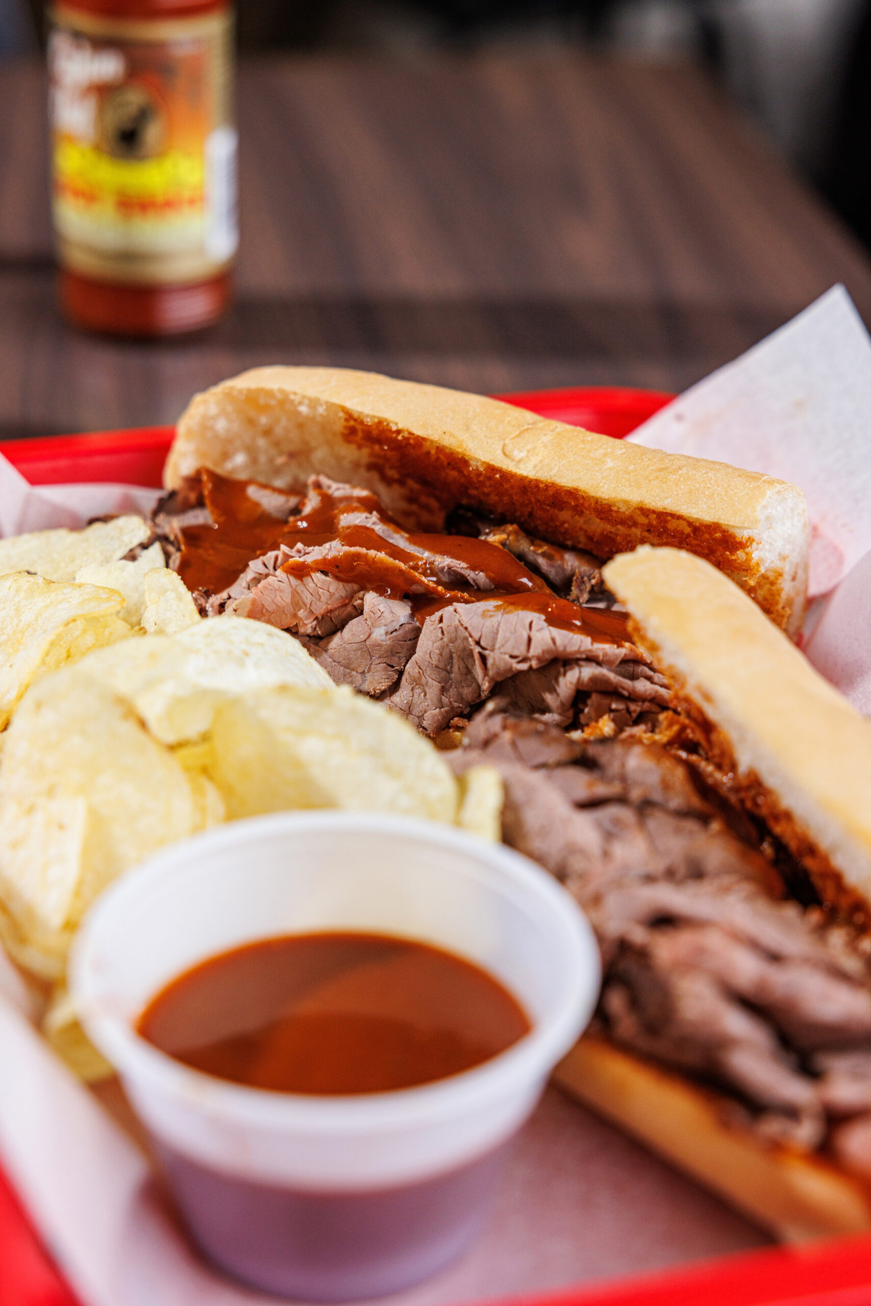 Beef, specifically smoked top round, is the biggest seller at both locations. Customers love it on a po-boy, Milton and Rich say.
