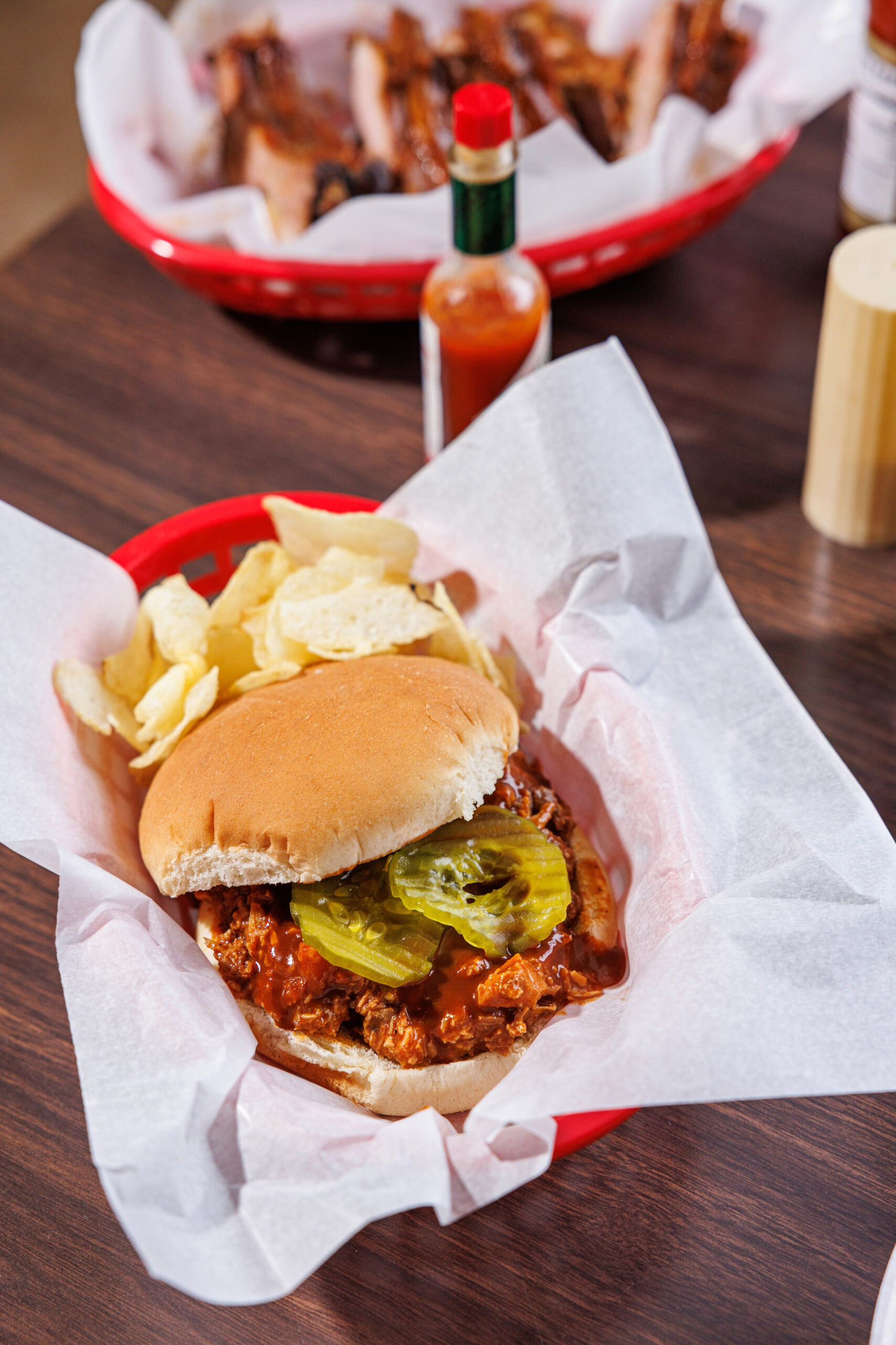 Each store serves the same homey, unfussy menu: wood-smoked barbecue served in plate, po-boy or sandwich form along with curly fries, homemade coleslaw, potato salad and a thin, tangy vinegar-based sauce. Both spots attract location-loyal regulars.