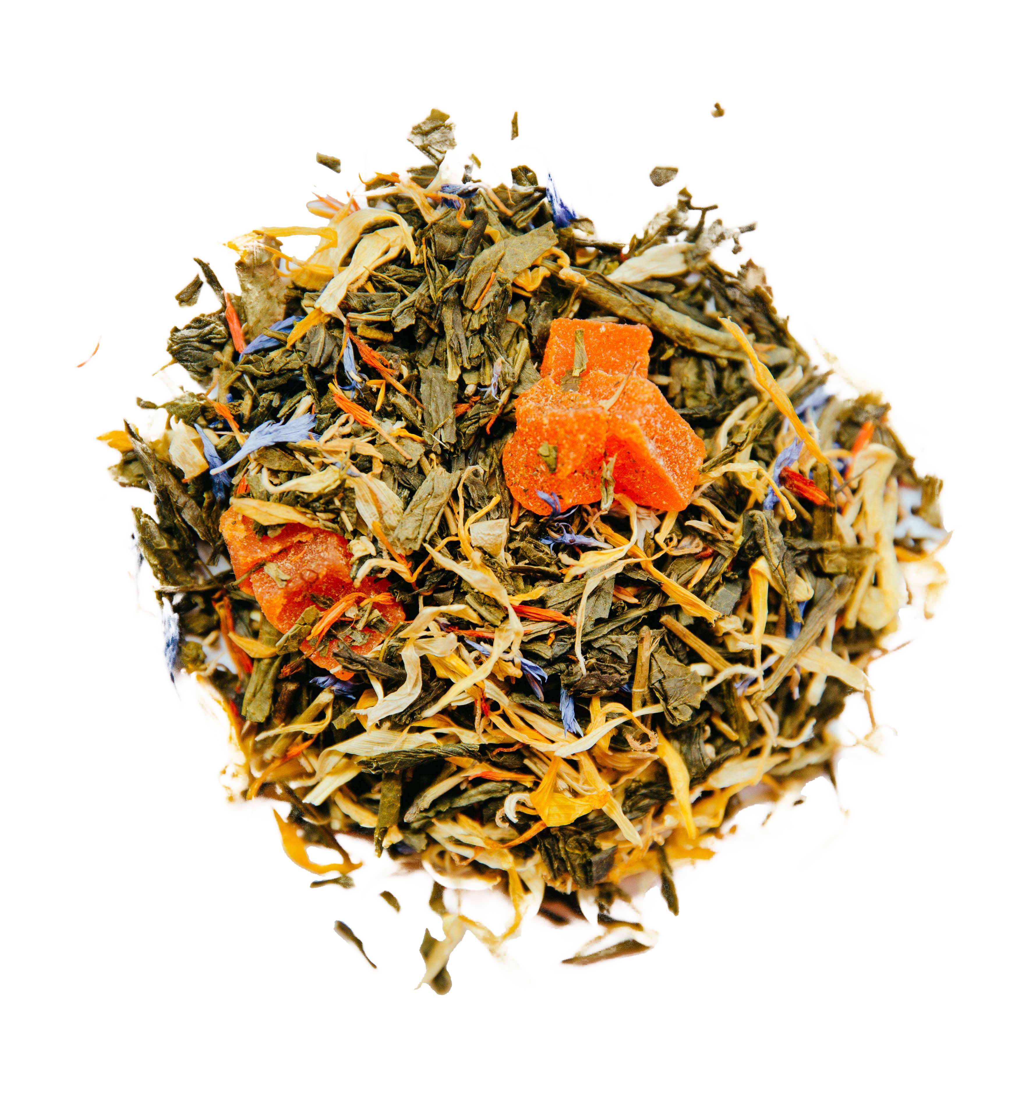 A bright, energetic green tea blended with fruit, calendula, safflower and cornflower. $3.29 per ounce