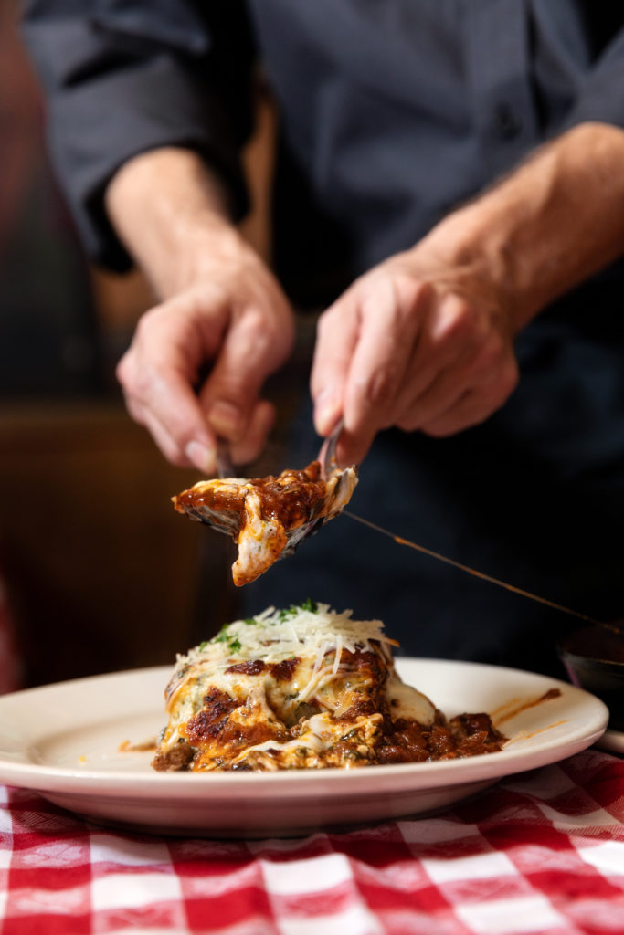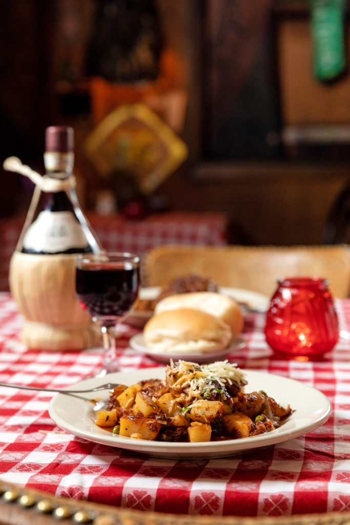What’s a must: Lentil Soup and Stuffed Vegetables to start; the Involtini entree for its tender veal roll stuffed with cheese, mushrooms, potatoes and peas; the traditional Lasagna served in a cast-iron skillet; and a housemade Tiramisu for dessert.