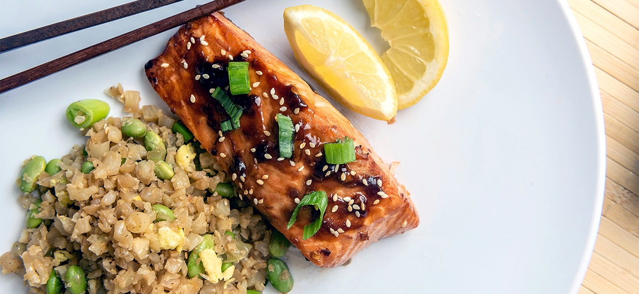 The menu Tracey and her sister Stephanie Riegel came up with this month satisfies that need. It includes a delicious homemade teriyaki sauce that can be used for a number of tasty Asian-style dishes. For the September issue, Tracey and Stephanie used it as a glaze for baked salmon. They suggest serving the salmon with a healthy and flavorful cauliflower fried rice and a refreshing green tea spritzer infused with fresh ginger and lemon. All the dishes are easy to make on a busy week night, but could also be used on the weekend for some casual entertaining.