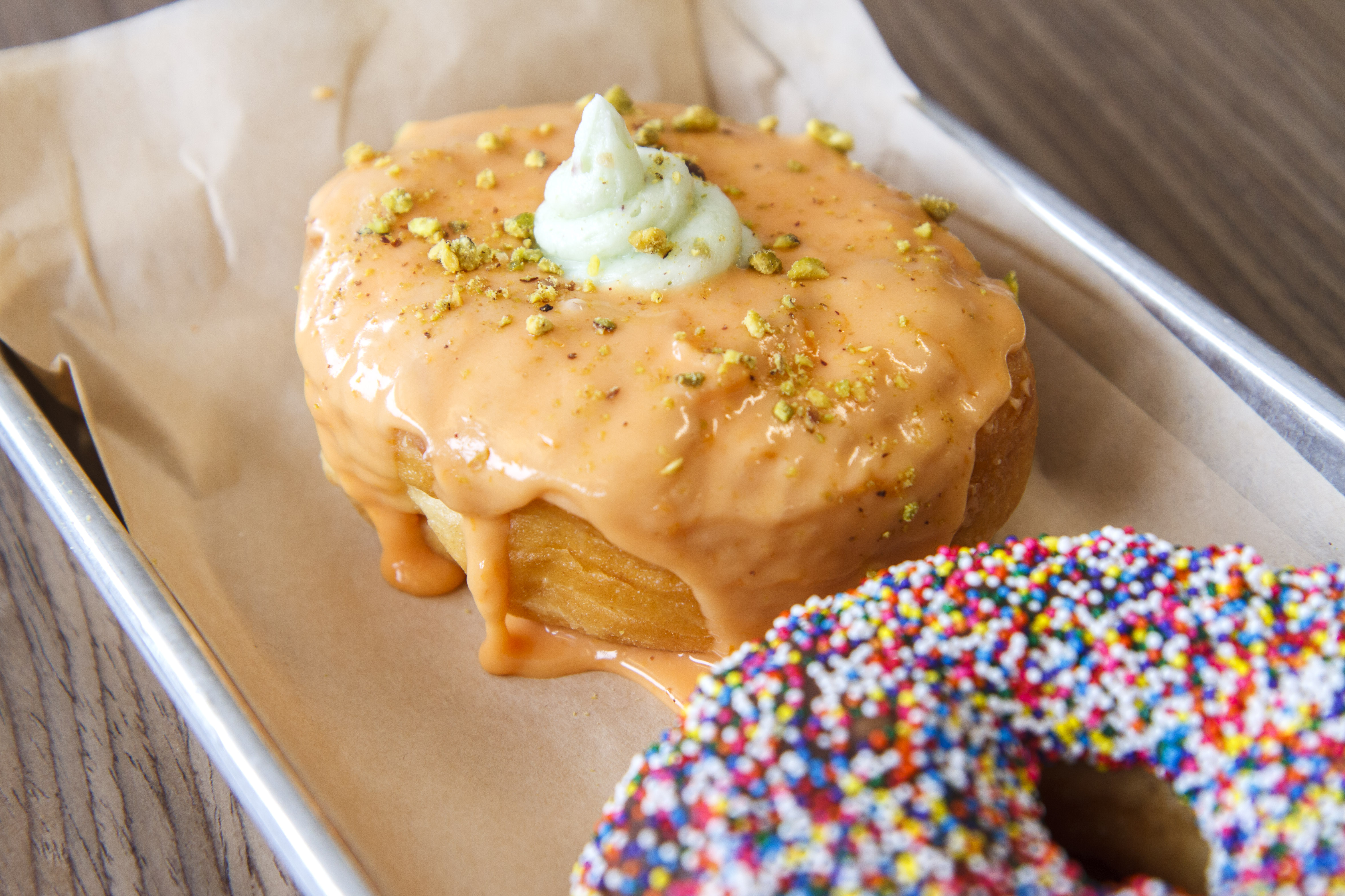 And, of course, if you’re paying a visit to Tiger Deaux-nuts, you have to at least sample one of its current specialty doughnuts. In addition to a classic chocolate doughnut with sprinkles, we opted for one of this week’s specials: honey orange pistachio. The bold tanginess of the orange glaze is tempered perfectly with mellow honey and slightly savory pistachio cream, making it a worthy carb splurge and a summer dream.