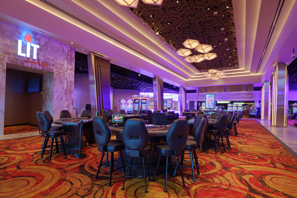 Elsewhere in the casino, 3 Woks Noodle Bar serves pan-Asian fare served in a modern setting. The decor features textured, cream subway-style bricks and metallic accents. Start with small plates like spring rolls, pork potstickers and crab Rangoon, then move on to dishes like the Queen’s Chicken with orange-glazed crispy chicken over seasoned rice, or kimchee fried rice with fried egg, kimchee, carrot, snow peas and green onion.