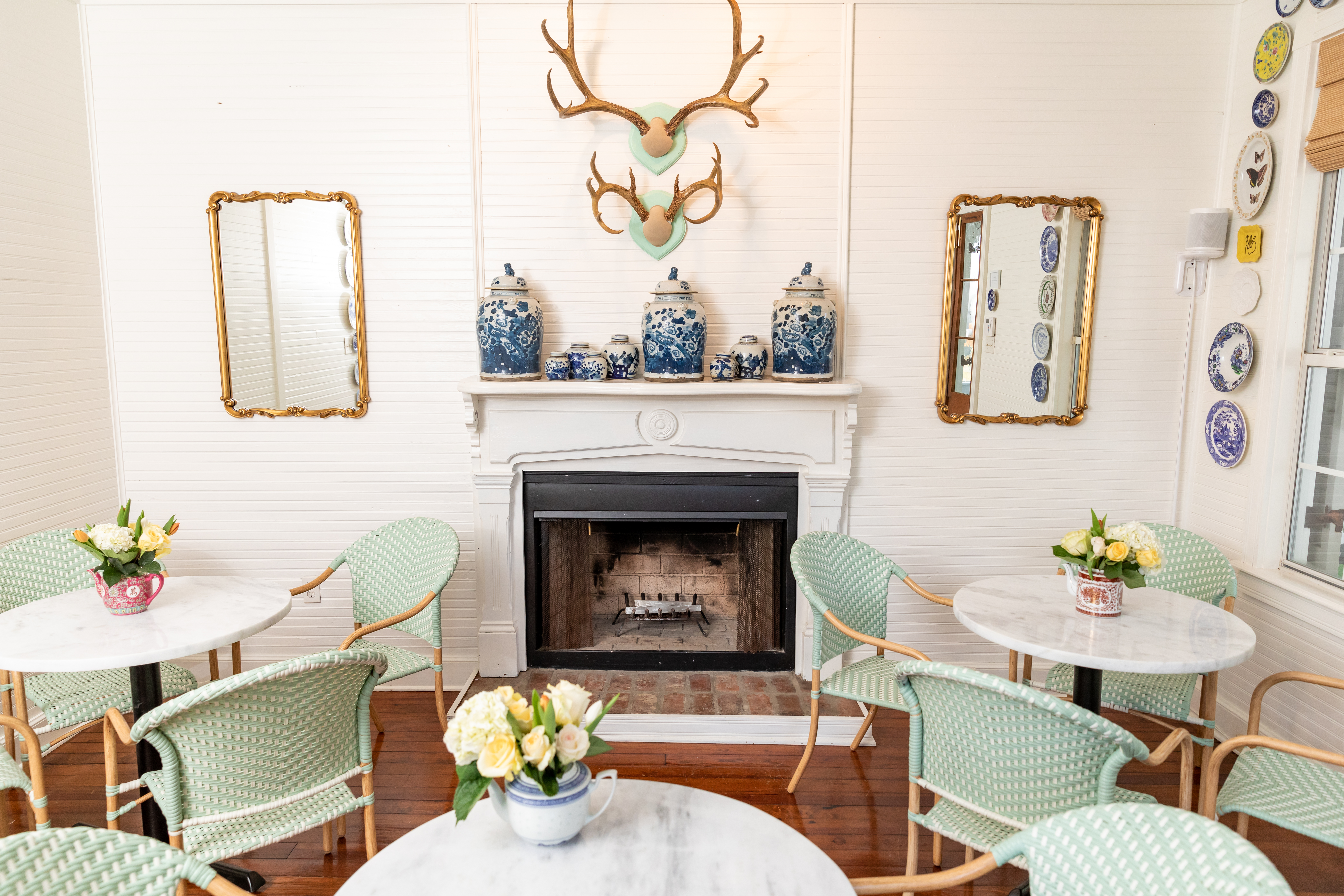 The cafe’s brick wall entrance is the first sign of the unique charm that differs from other spaces on the busy street. Inside the small cottage, guests can enjoy rustic decor on the walls like wood-panels, antique-style plates and a mirror-flanked cozy fireplace. Or they can sit outside and enjoy the greenery in the courtyard seating area.