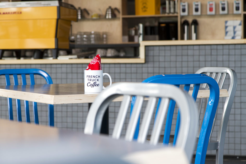 “When it’s cloudy out, this building makes it feel sunny,” French Truck Coffee owner Geoffrey Meeker says. “We’re doing serious coffee, so it needs to feel fun.”