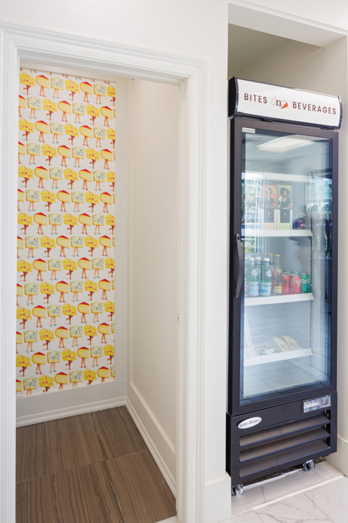 The grab-and-go fridge is stocked with mineral, sparkling and still water, soda and Savyll Beverage Co. mocktail flavors like zero-proof palomas, moscow mules, bellinis and mojitos.