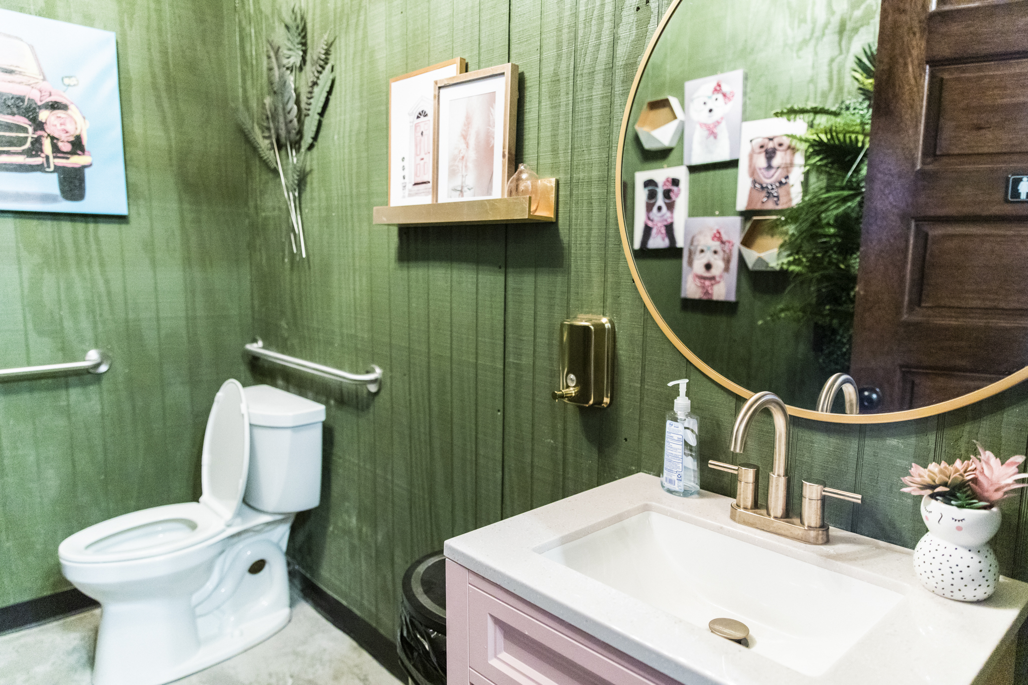 As you walk through the space, you might notice plenty of pink flamingos that blend into the decor. It’s a way for the Main Lobby to pay homage to the Spanish Town community. Guillory says that the rooftop area will even be able to be rented out to watch the big Spanish Town parade go by in all its pink glory.