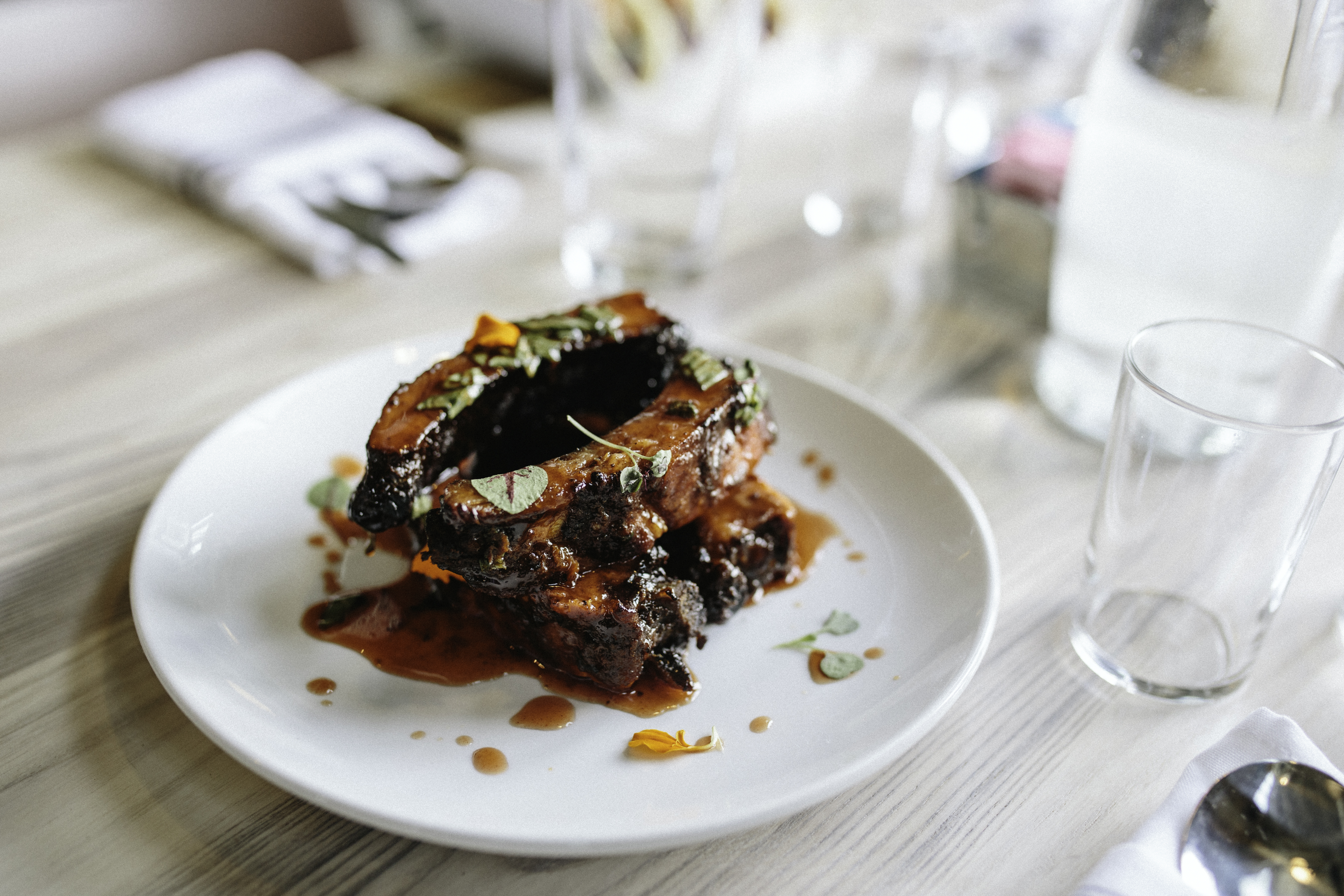 On his menu, you’ll find modern takes on traditional south Louisiana dishes, like crawfish and tasso mac ’n’ cheese and a fried seafood-stuffed po-boy covered in étouffée. You’ll also find Asian flavors, like in his ribs, which are tossed in an Asian char siu sauce, and his Korean Barbecue Tacos.